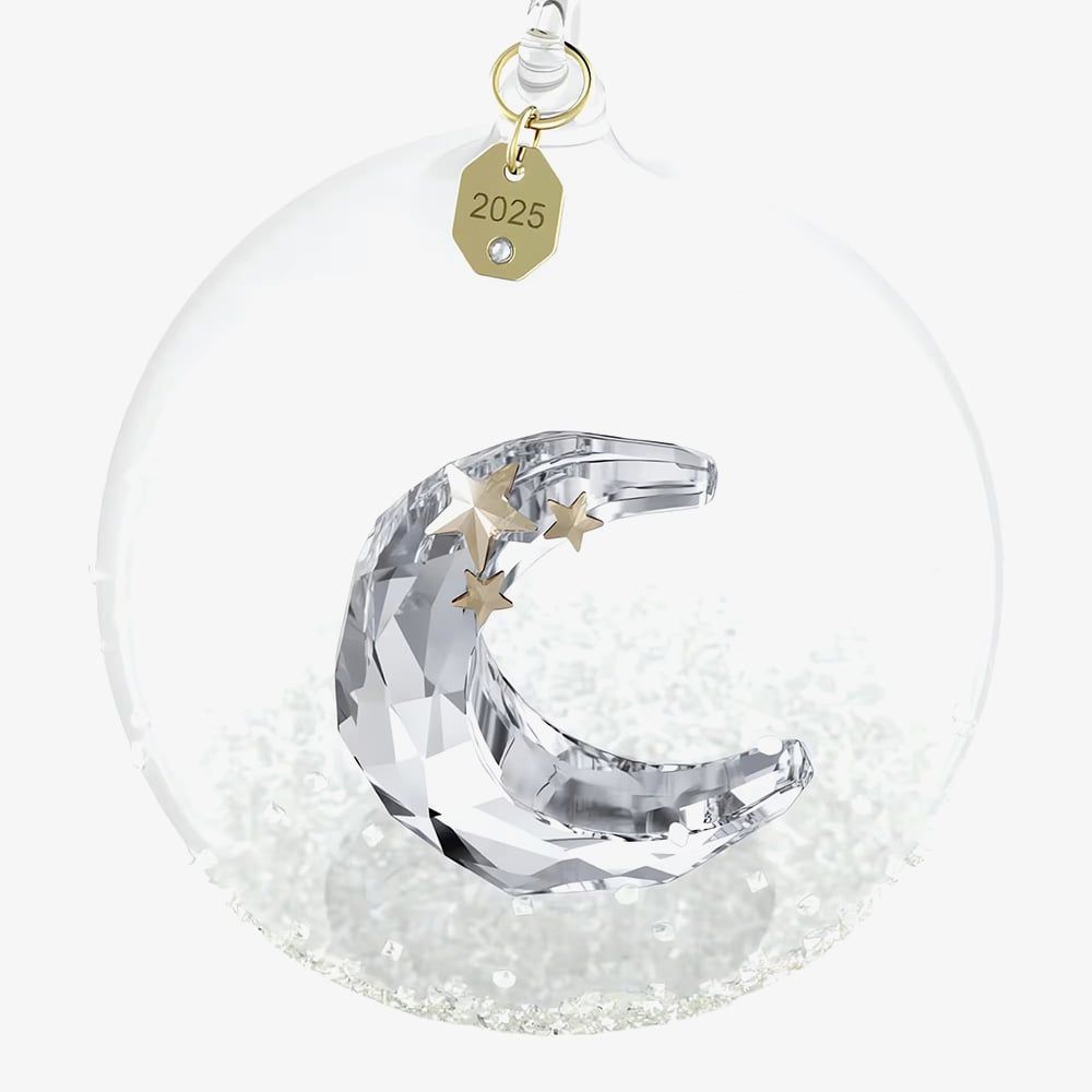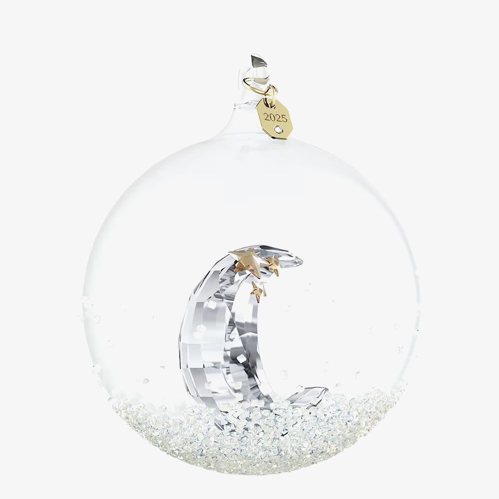 https://www.thbaker.co.uk/swarovski-annual-edition-2025-ball-ornament-5701865163734Swarovski Annual Edition 2025 Ball Ornament 5701865https://www.thbaker.co.uk/media/catalog/product/1/6/16-12-25140094_swarovski_01.jpg88.9599GBPOutOfStock(FW25) Annual Edition Ball Ornament 2025 The Swarovski Annual Edition Ball Ornament 2025 shines with a soft lunar glow, making it a timeless keepsake. Adorned with around 2,200 shimmering crystals, the glass ball features a serene crescent moon inside, detailed with golden stars and 158 precision-cut facets. Suspended from a white grosgrain ribbon with a 2025-engraved gold-tone tag, it's a perfect gift for birthdays, weddings, or anniversaries. Please note this is a decoration object and is not suitable for children under 15.