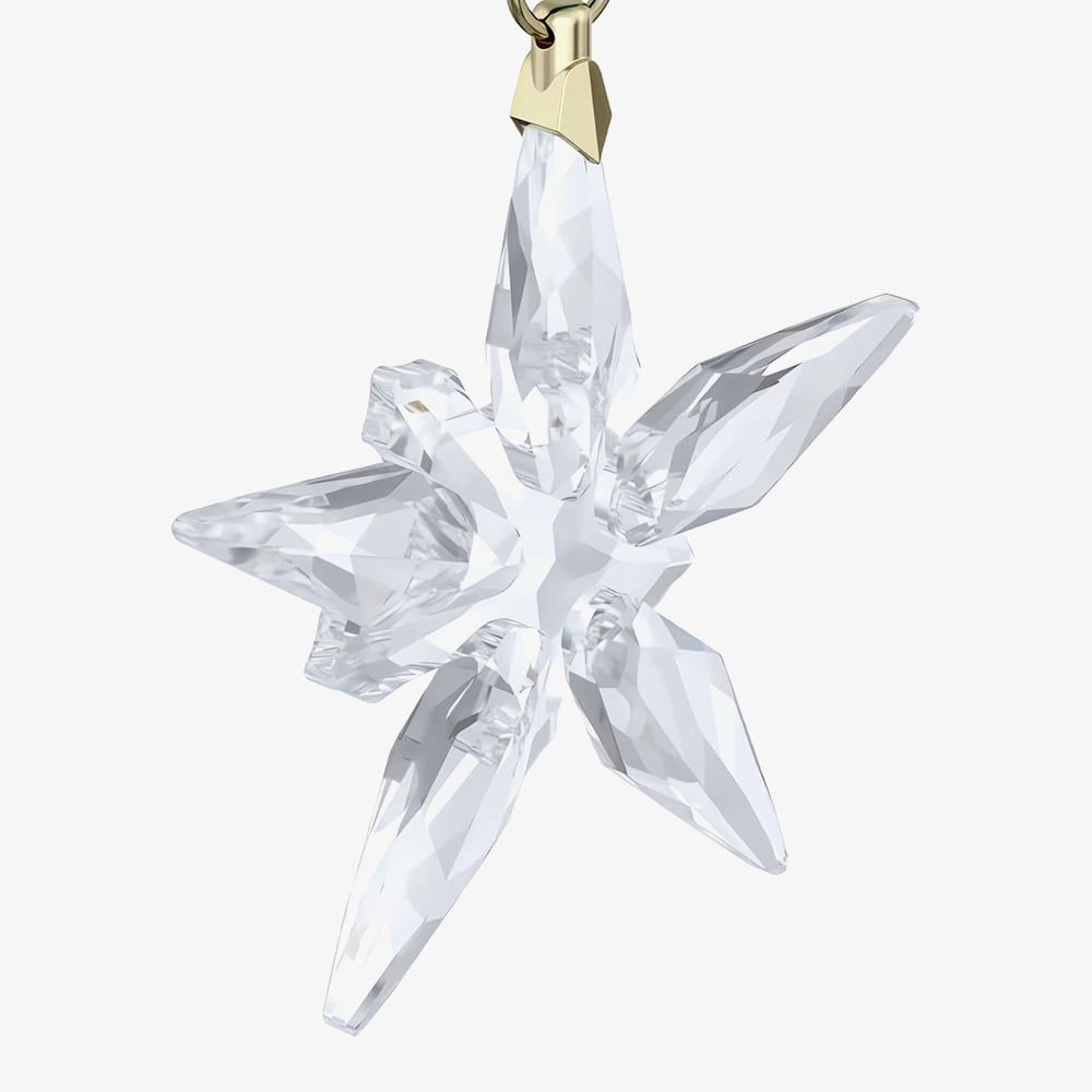 Embrace the magic of the night sky with the Swarovski Annual Edition Little Star Ornament. Crafted with 190 precision-cut facets, it hangs from a green grosgrain ribbon with champagne gold-tone accents. Elegant and luminous, it’s a perfect addition to any festive tree. Please note this is a decoration object and is not suitable for children under 15.