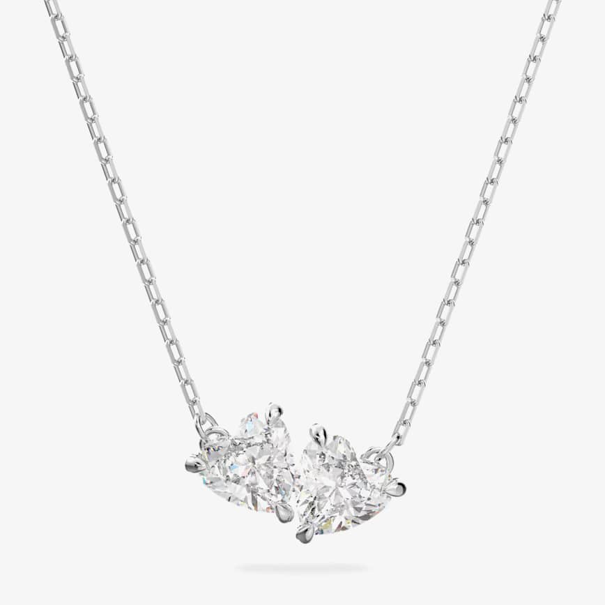 Adorned with exquisite stones crafted in the shape of twin hearts, the rhodium plating enhances the chain's subtle elegance, infusing it with a hint of romance. A delightful and charming choice, this long necklace makes for the perfect gift.