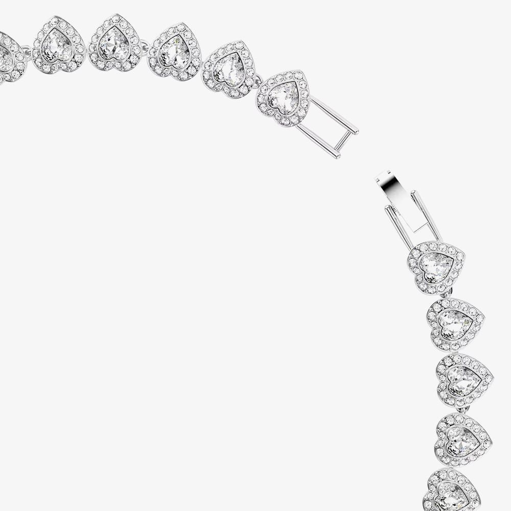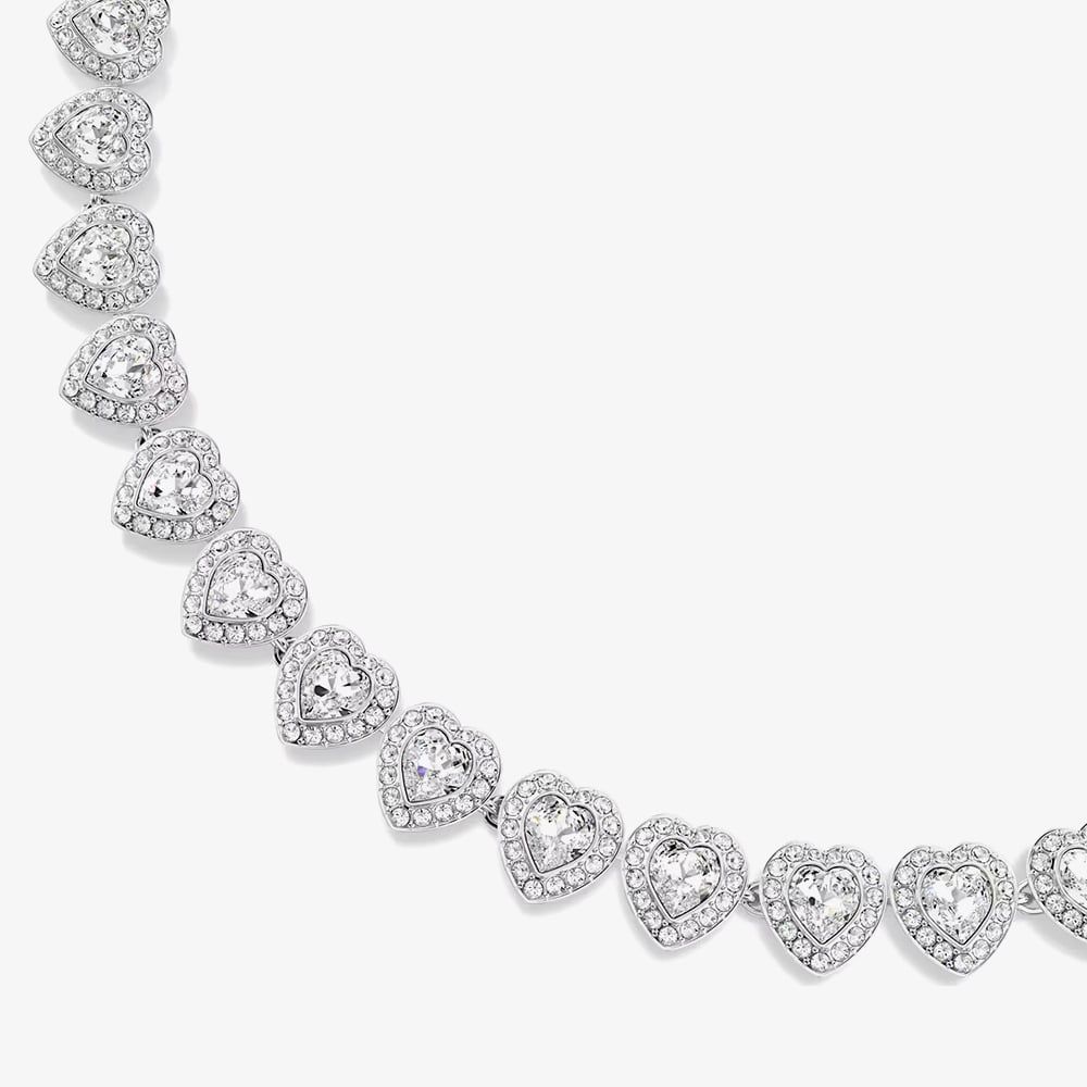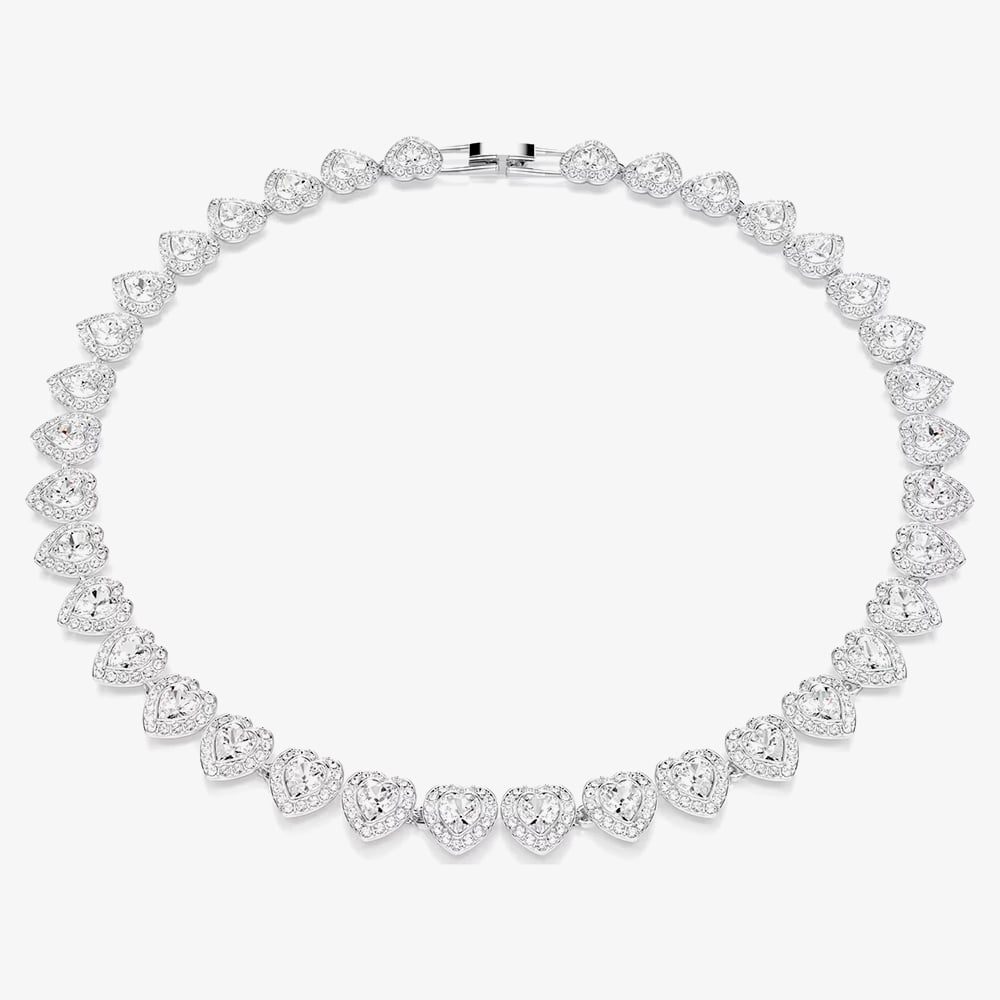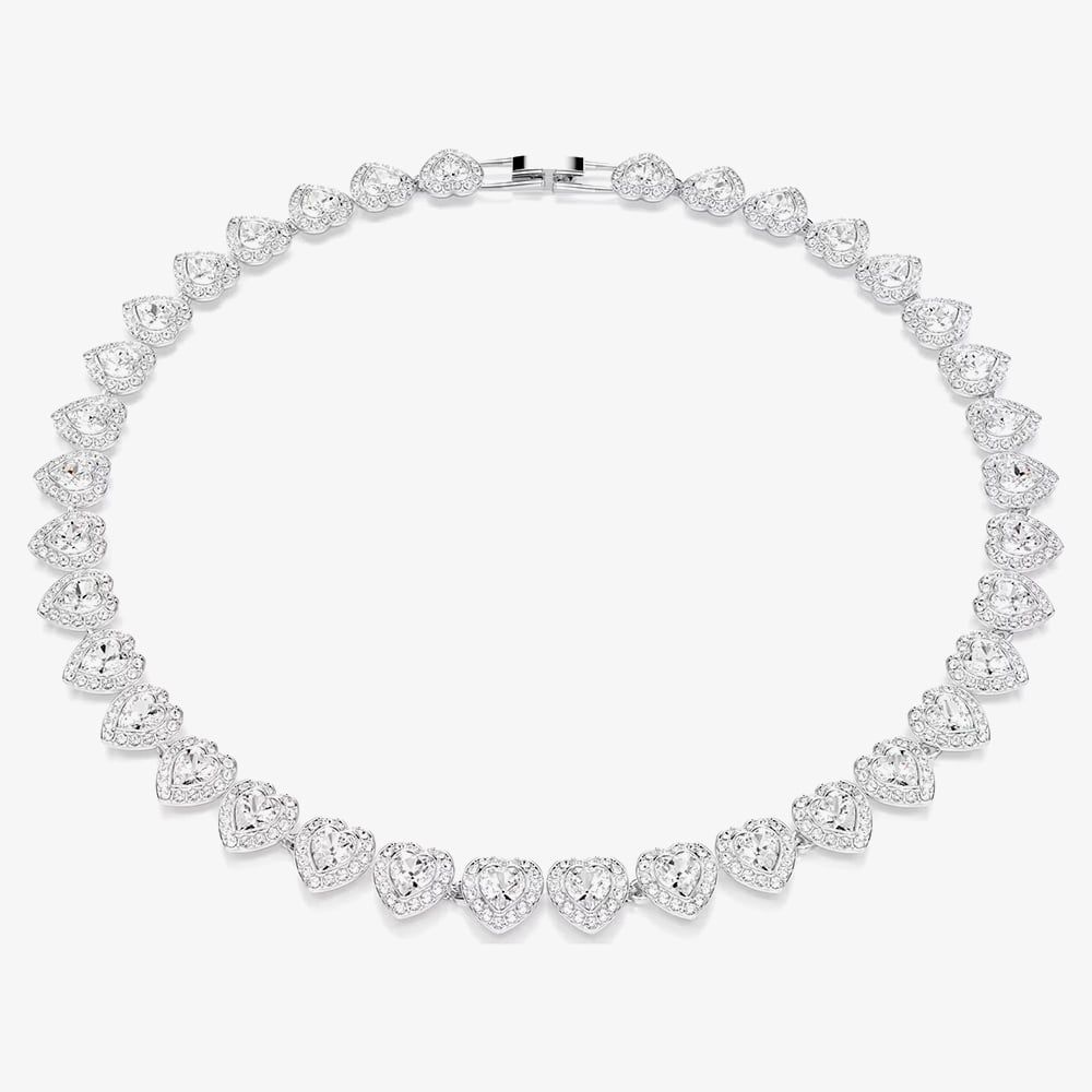 Shining a light on love, this Swarovski necklace is romantic as well as radiant. The rhodium plated design features a full circle of heart-shaped crystals, each surrounded by a glittering halo of clear pavé. Pair this necklace with other matching jewelry to create your own expressive combinations.