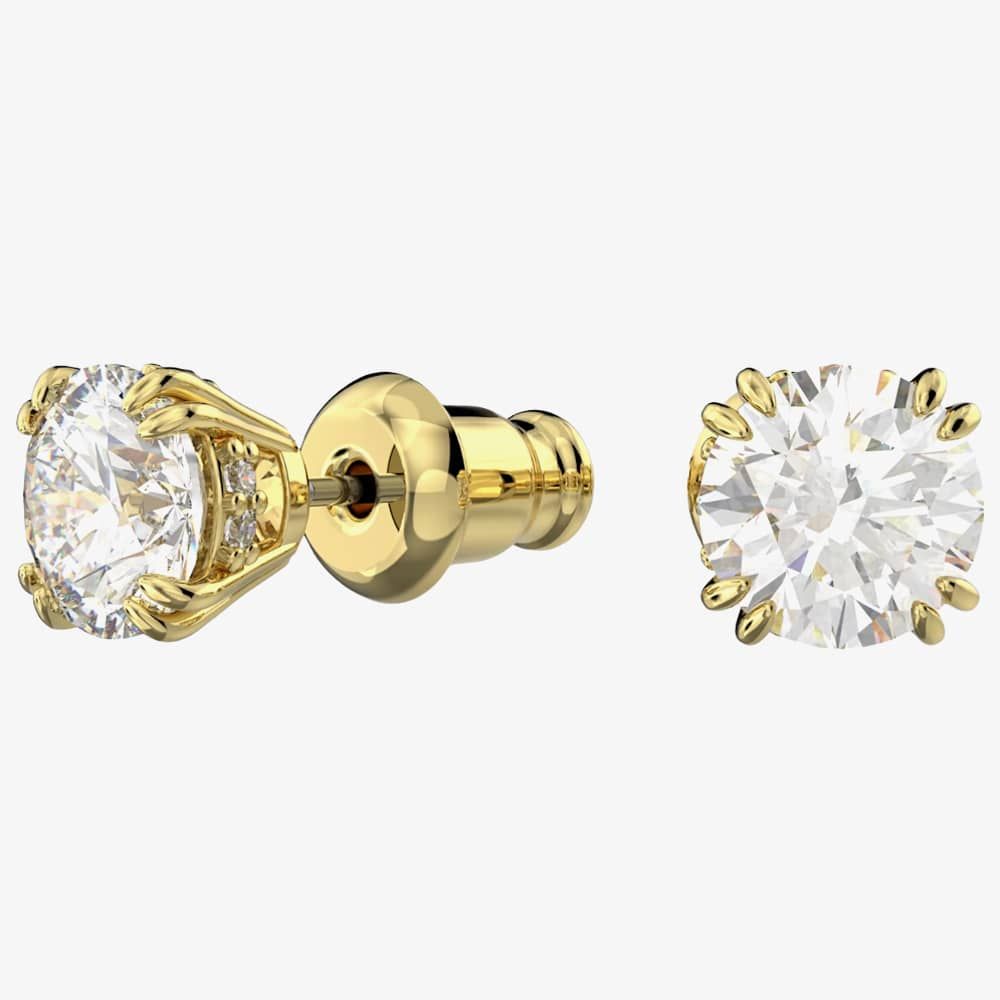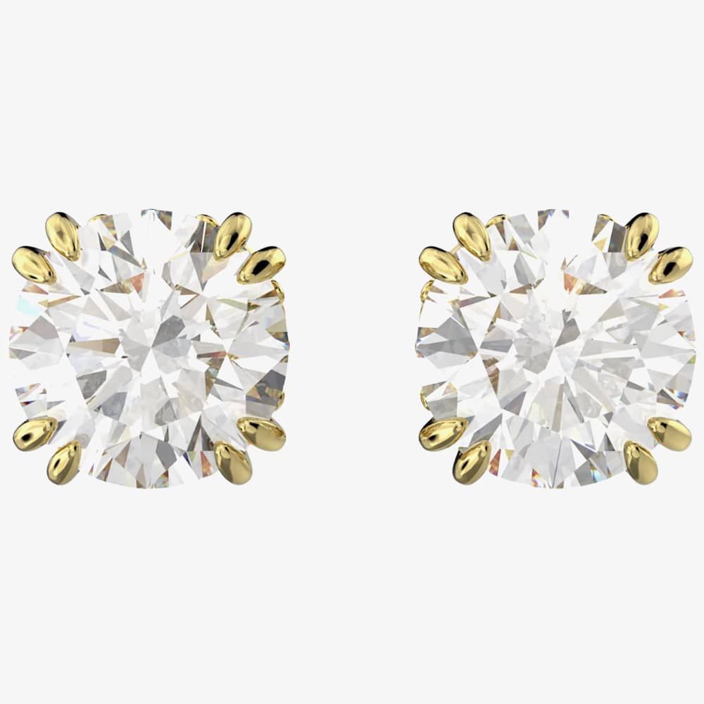 Swarovski Constella Gold-Plated Stud Earrings 5642595 are delicately crafted from base metal with gold plating. These beautiful stud earrings feature a double prong setting white cubic zirconia centre stone adorned with white Swarovski crystal pave on the gallery, finished with a bullet backing for a secure fitting. Length: 0.6cm. Width: 0.6cm. Weight per stud: 1g.