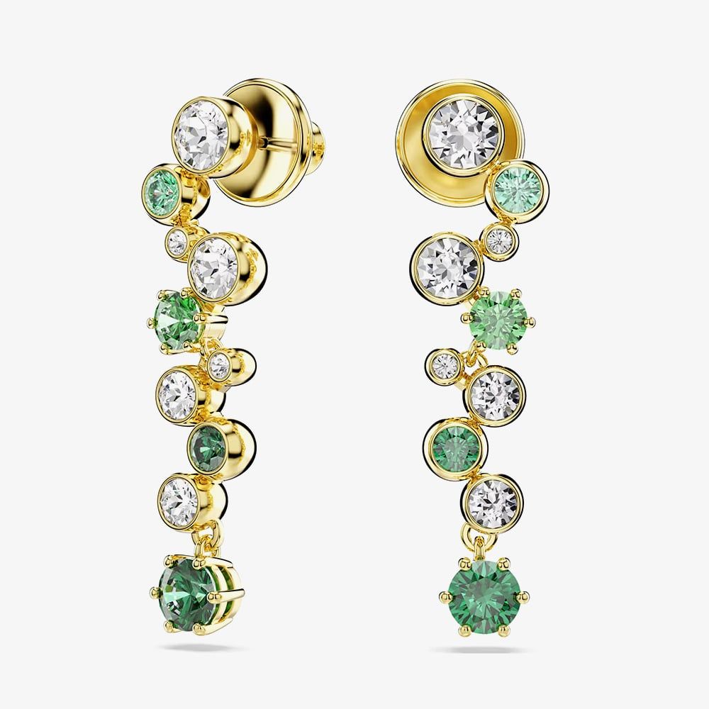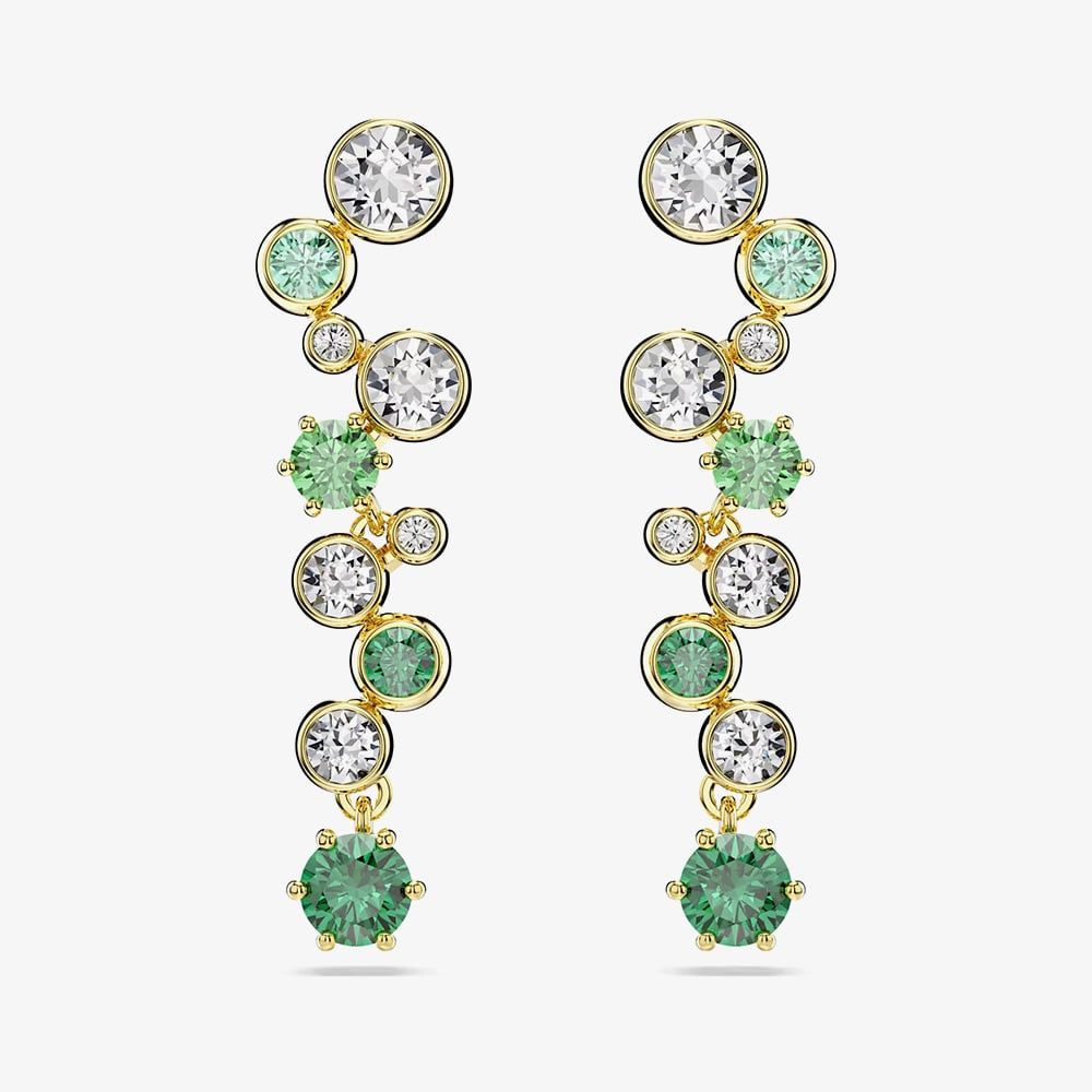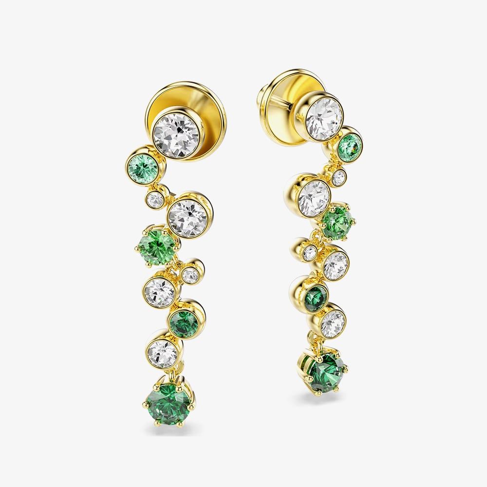 Make a bold statement with these star-inspired Constella earrings. Crafted in gold-tone plating, the strands showcase white crystals and green Swarovski Zirconia in a mix of sizes and shades, expertly set in both prong and bezel settings for a striking, vibrant look.