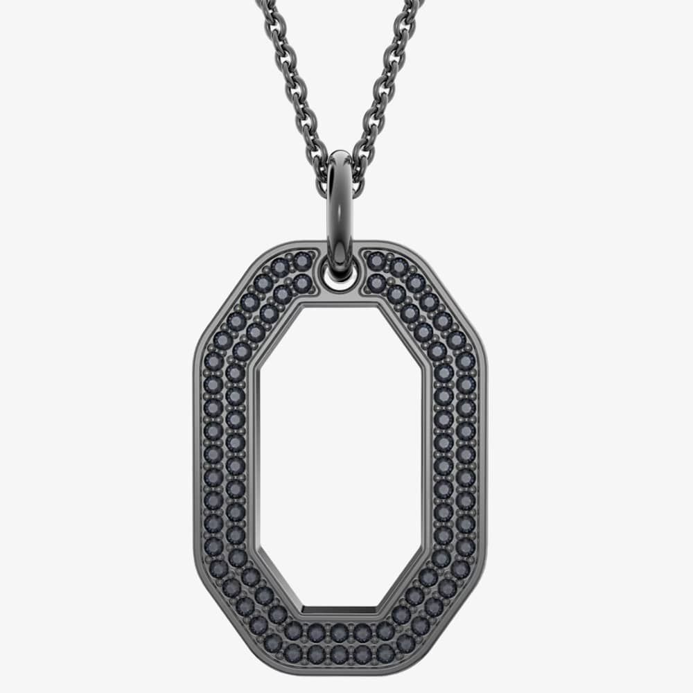 Boasting an octagonal design, this ruthenium-plated piece highlights our iconic pavé technique on a bold metal construction. For a contemporary twist on layering, pair it with longer pieces from the Dextera family, creating a modern and sophisticated ensemble that radiates confidence and glamour.