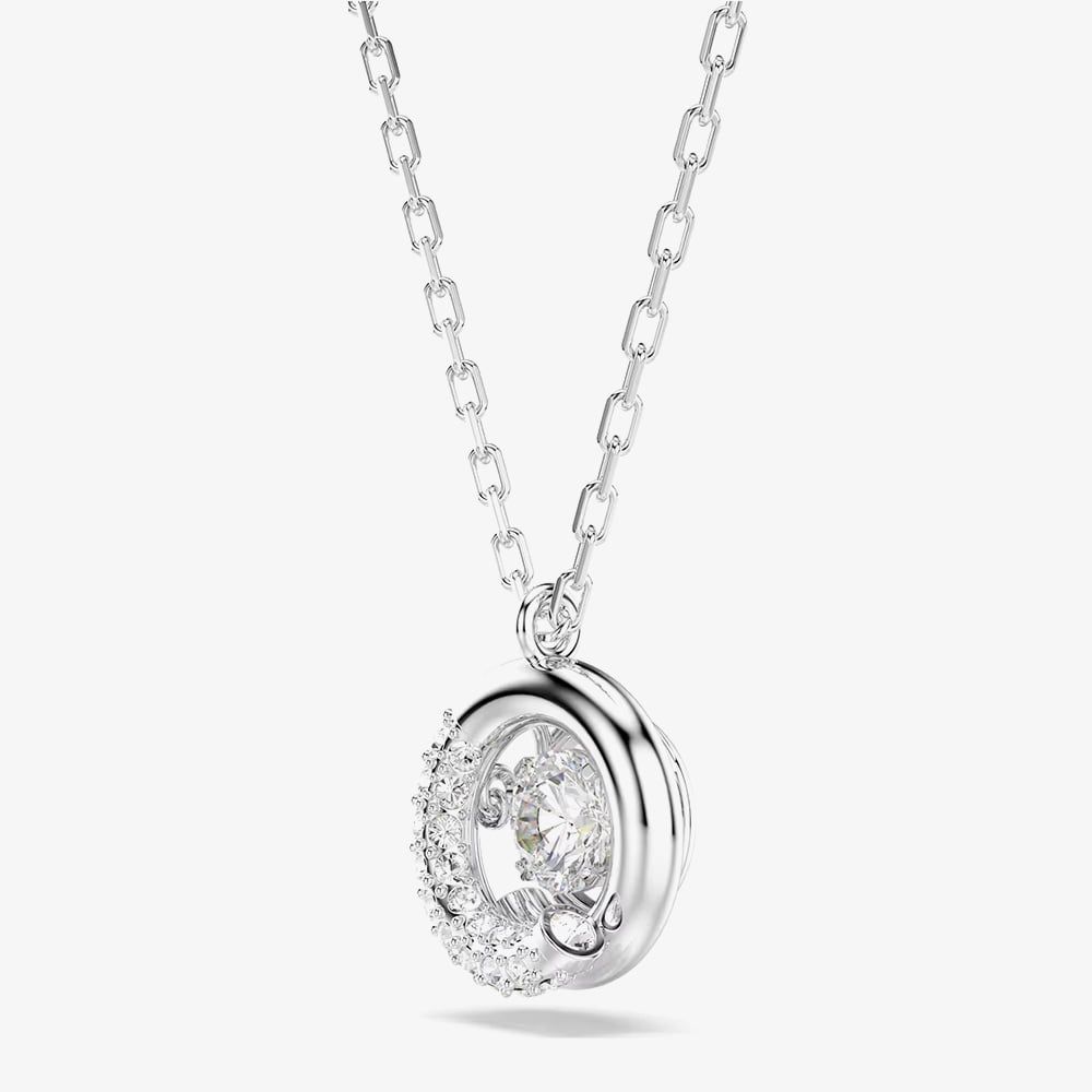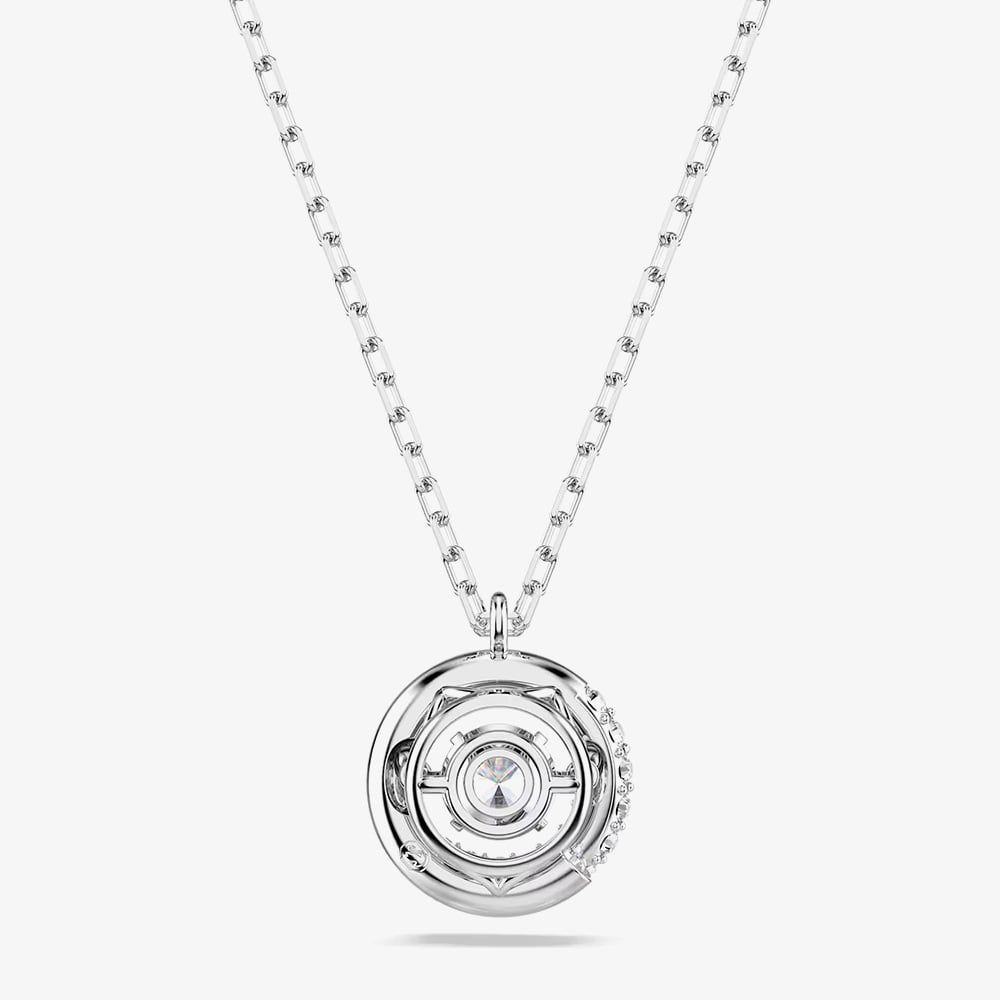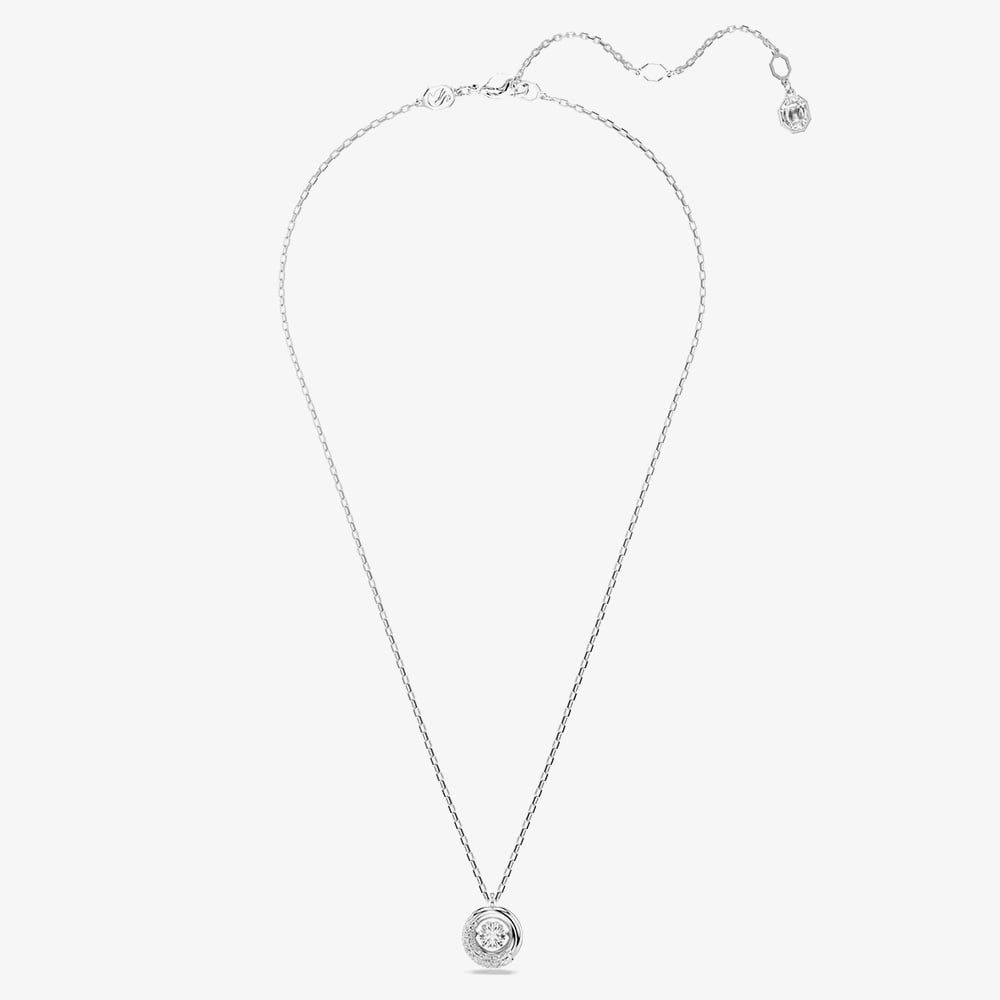 Swarovski Dextera Rhodium Plated Round White Crystal Pendant Necklace 5733400