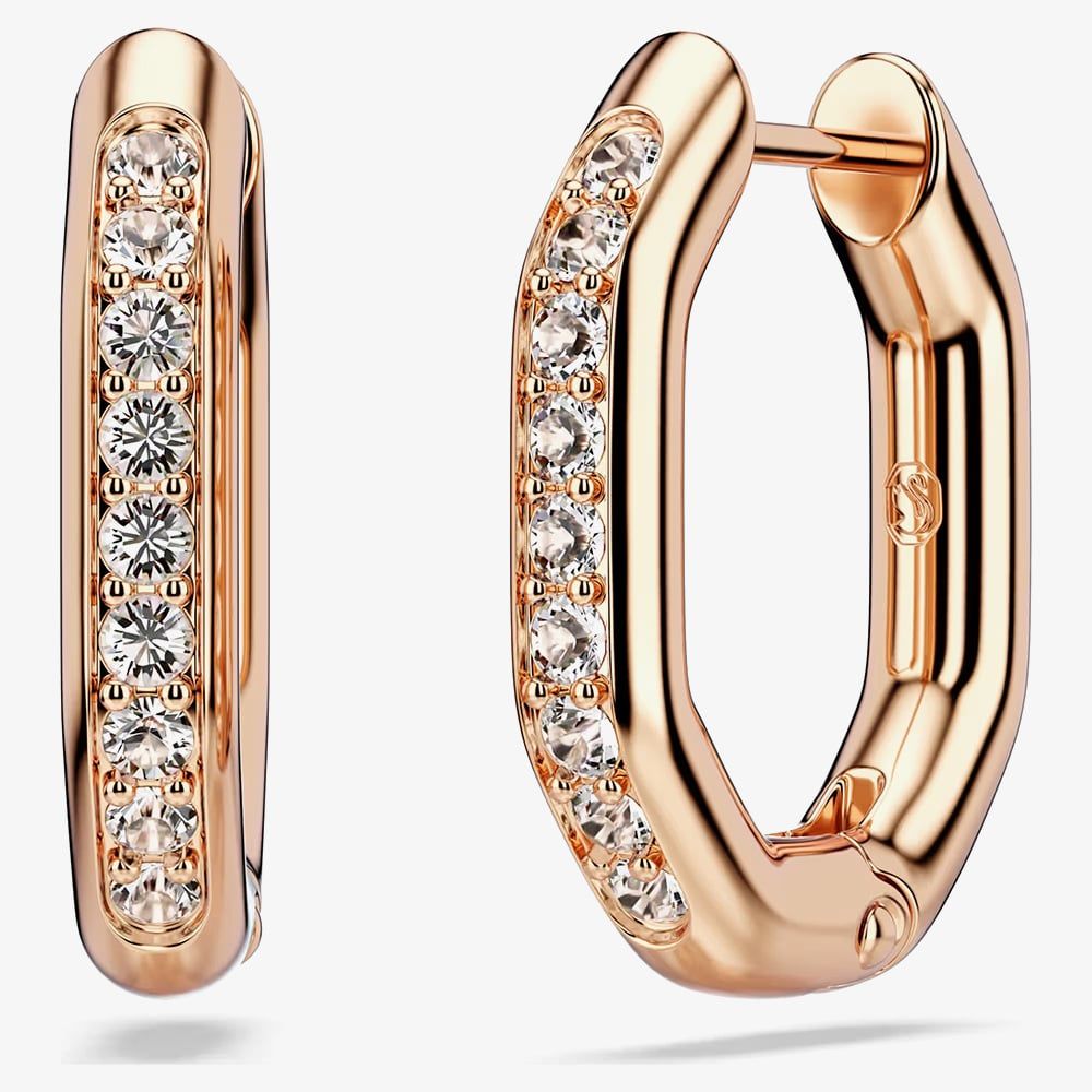 Add modern elegance to your look with the Swarovski Dextera Rose Gold Tone Crystal Hoop Earrings. These striking octagonal-shaped hoops are finished in warm rose gold tone plating and set with shimmering white Swarovski crystals for a refined sparkle. Perfect for elevating everyday outfits or adding a contemporary touch to evening wear.