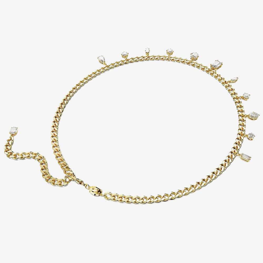Indulge in bold luxury with the radiant Dextera necklace. Its gold-tone plated chain showcases an array of dangling crystals in various cuts, with a single Swarovski Zirconia at the end of the elongation. Every detail is crafted to be admired, creating a striking piece of jewellery that enhances your everyday style.