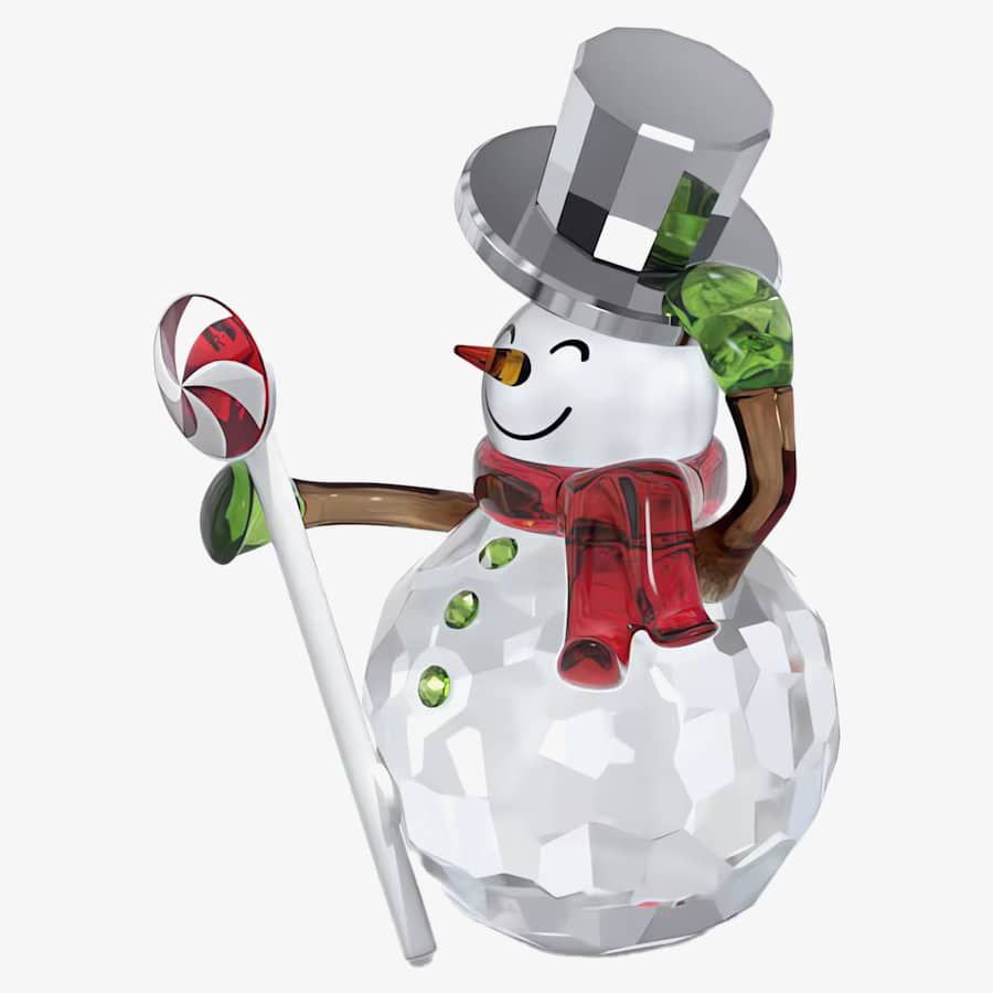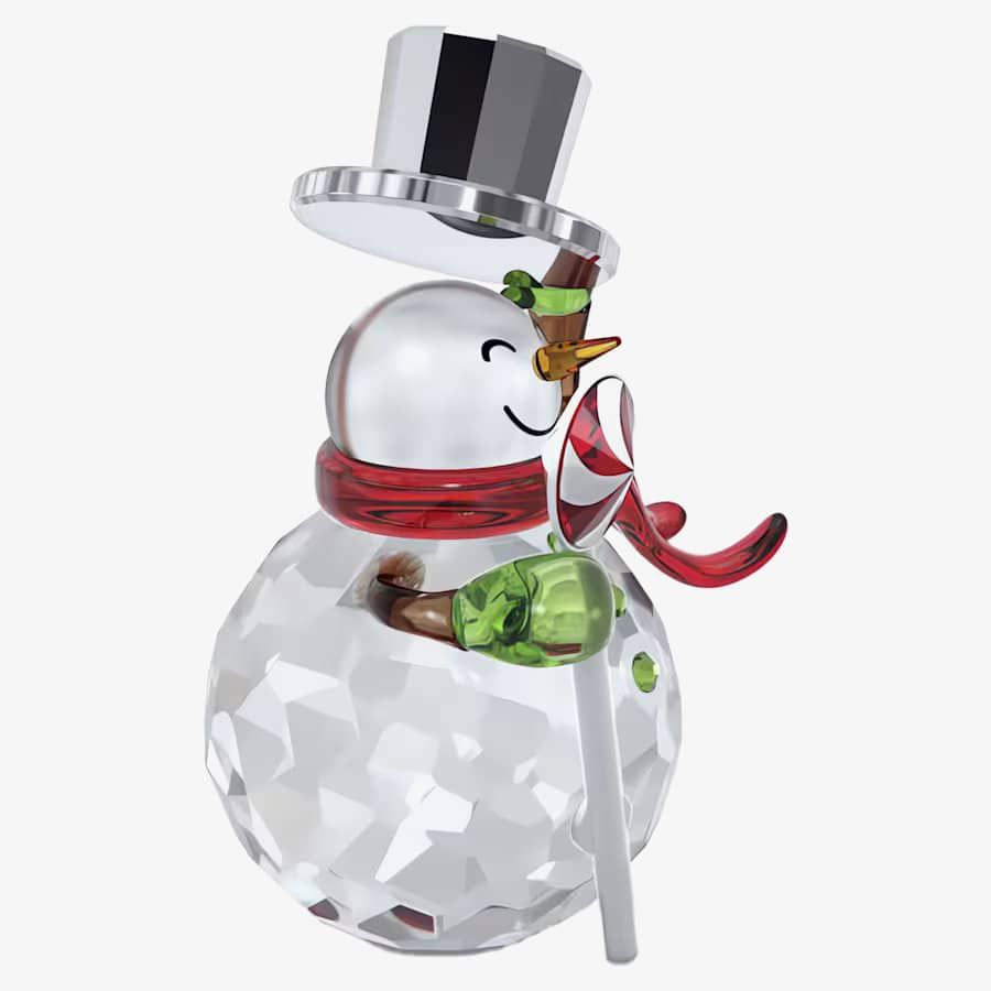 Tipping his hat with festive cheer, this jolly snowman figurine warmly welcomes the holiday season. The heart-melting design, crafted with 239 facets, showcases charming details such as his cosy scarf and lollipop. The crystallised hat boasts a chrome effect, while metal accents are finished with lacquered white.