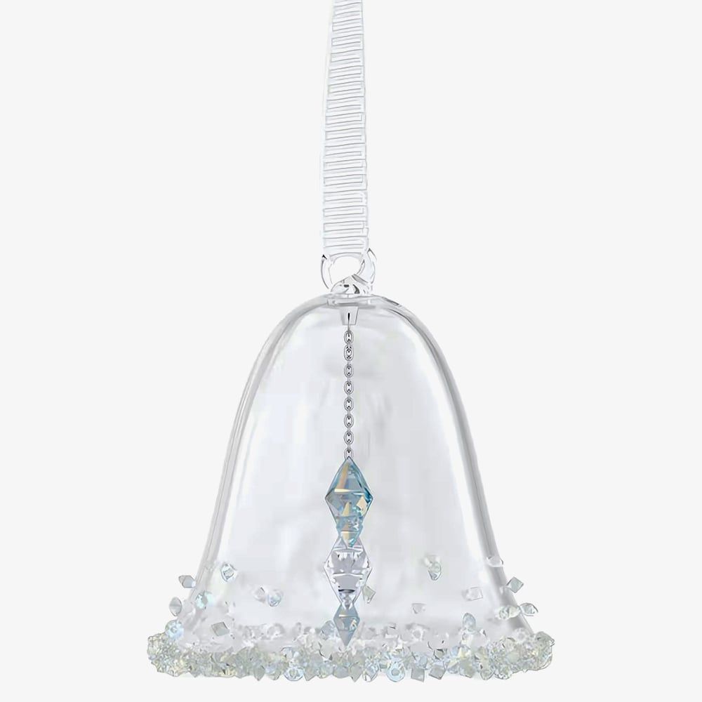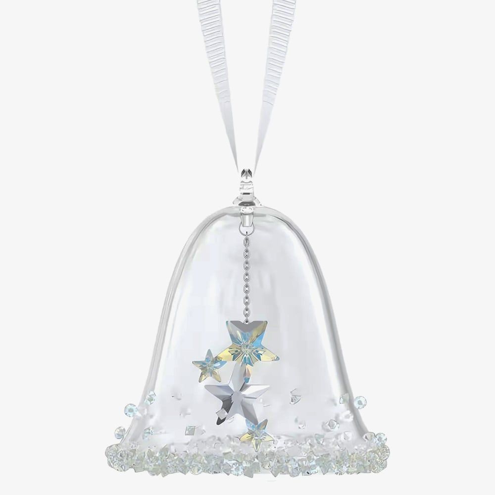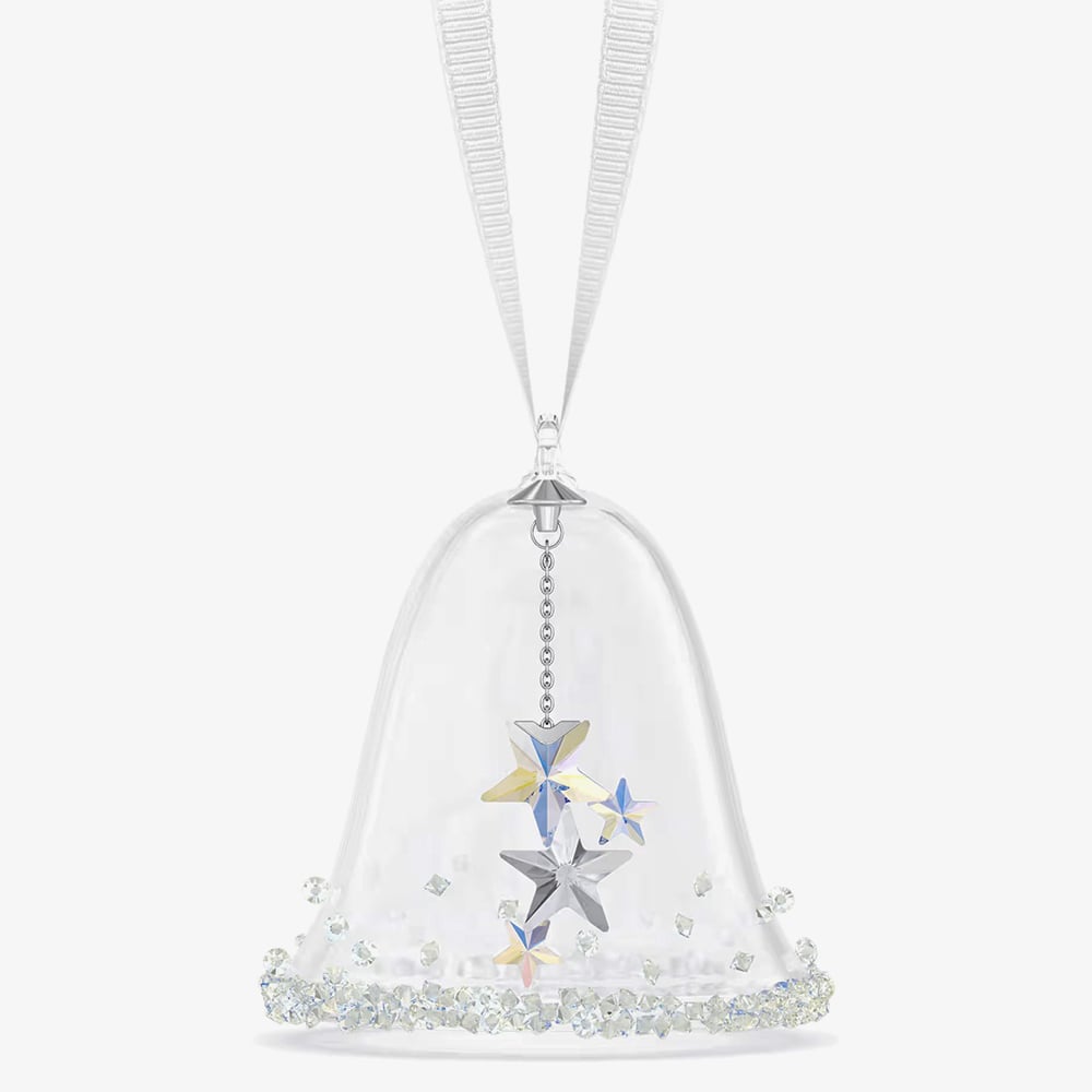 For the first time, Swarovski has created a miniature version of its traditional bell ornament. The pristine glass design is adorned with approximately 300 small crystals, while the interior features a star-shaped clapper with 108 facets and the mesmerizing Aurora Borealis effect. Suspended from a white grosgrain ribbon attached to a silver-tone metal cap, this piece makes a perfect display of delicate beauty in your home. This is a decorative object, not a toy, and is not suitable for children under 15.