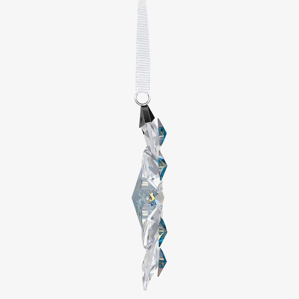 A dazzling star is the centrepiece of any holiday décor. This shimmering ornament offers a fresh take on the classic motif, featuring 288 radiant facets and silver-tone metal accents. Twelve flatback stars in various sizes surround the centre, each crafted with Swarovski’s mesmerizing Aurora Borealis effect. Suspended from a white grosgrain ribbon, this piece will bring joy and wonder throughout the season. Note: This is a decorative object, not a toy, and is not suitable for children under 15.