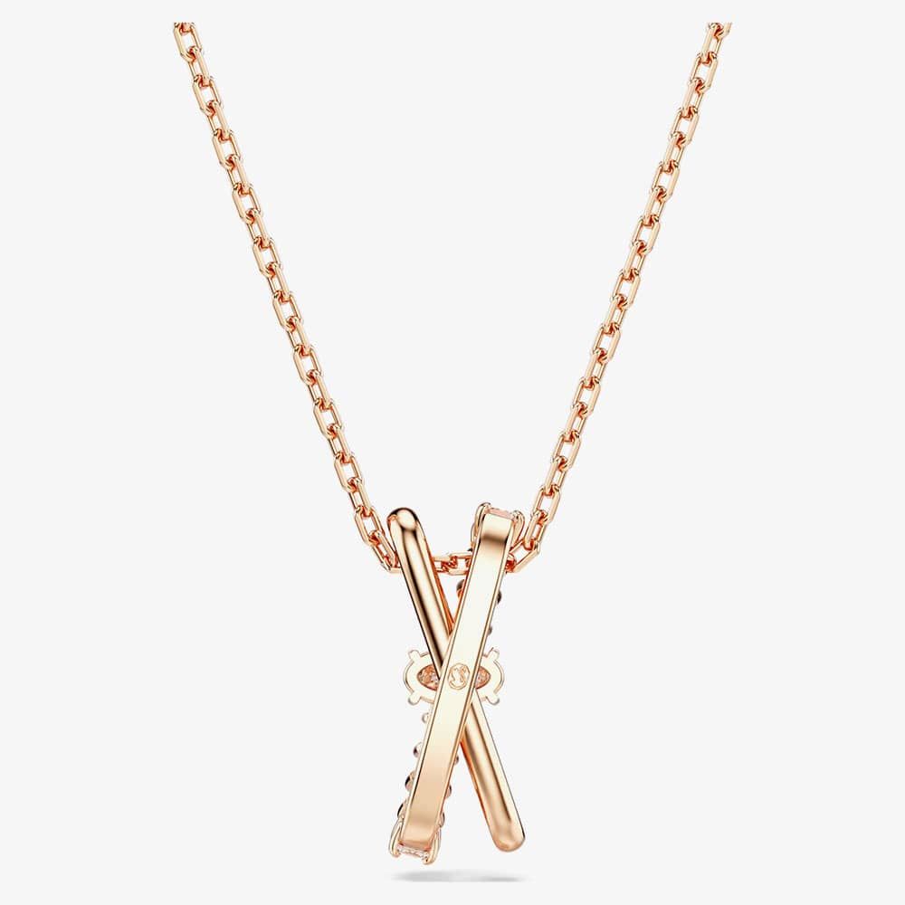 This stunning Hyperbola pendant features two bands in rose gold-tone plating. The one side is adorned with clear Swarovski zirconia. To add to the brilliance and sparkle, there is a single oval-cut Swarovski zirconia placed in the centre where the two bands meet. Adjustable between 38 – 45 cm, this piece allows for versatility. This design not only showcases elegance but also ensures a unique and eye-catching look that is sure to garner admiration.