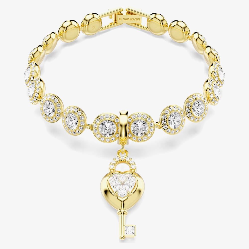 Personalise your Swarovski bracelets and necklaces with this romantic Idyllia locket inspired charm. An 18ct gold plated design of a heart shaped key is set with sparkling Swarovski Zirconia with sweet pink enamel detail on the reverse. The custom-design clasp allows you to wear this charm on various necklaces and bracelets.