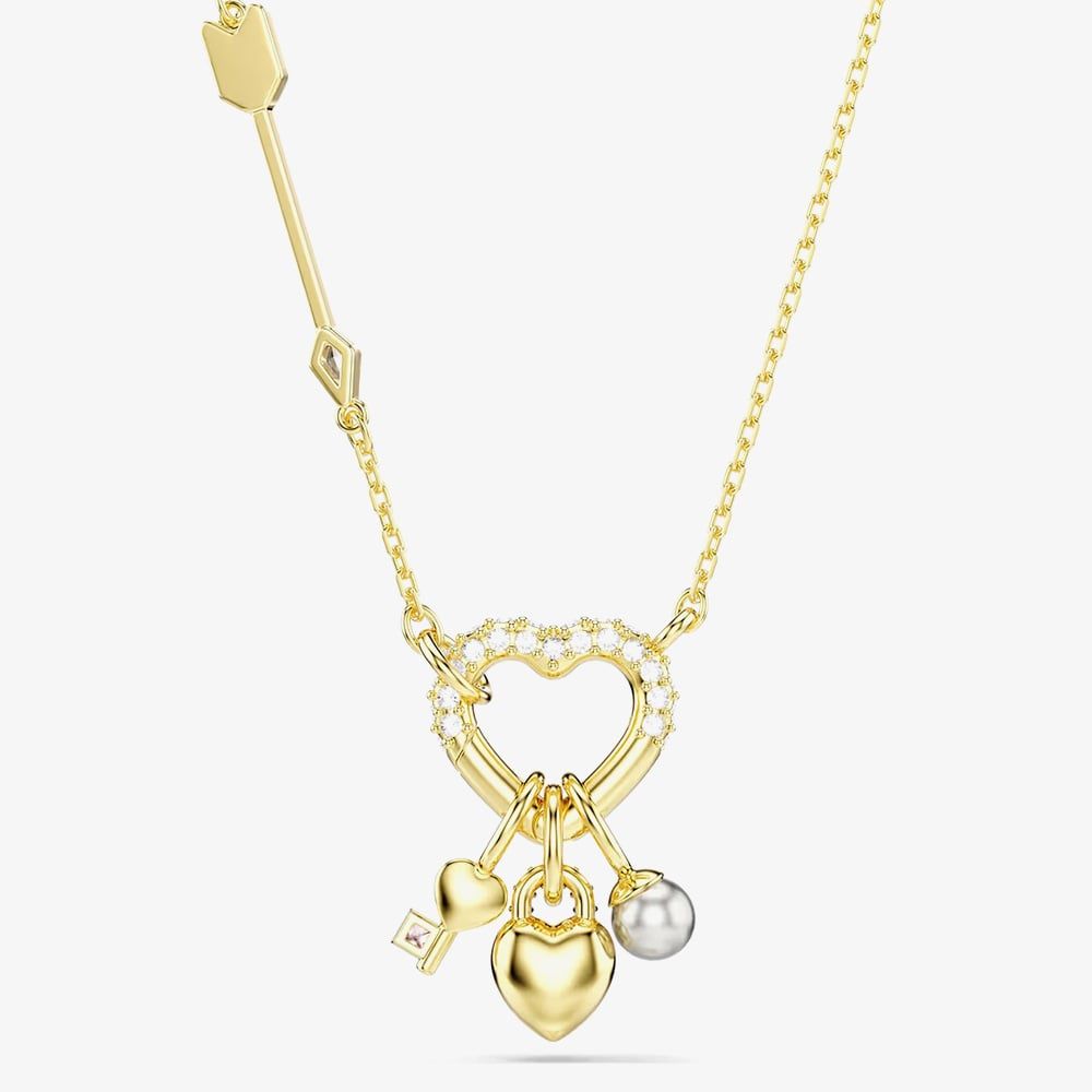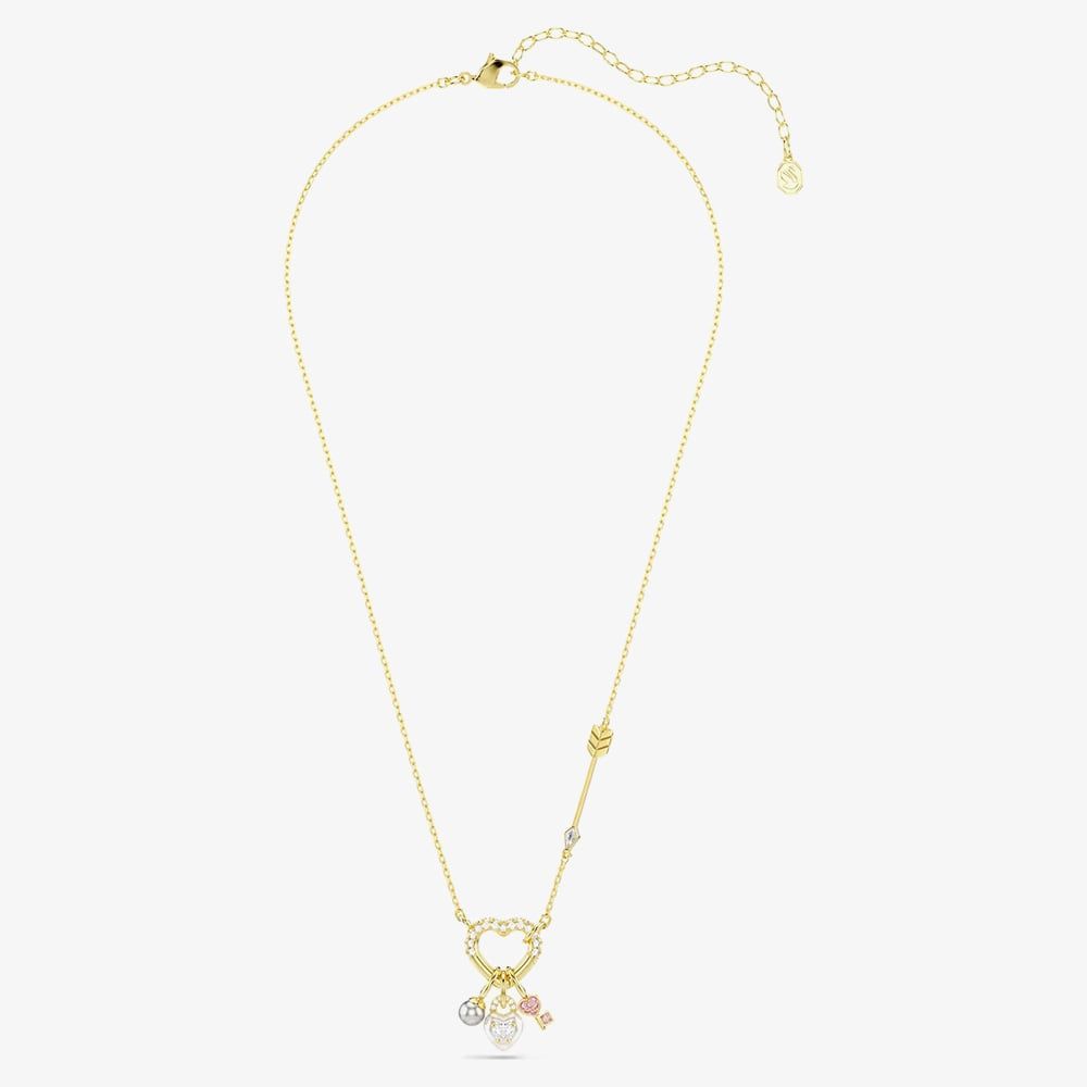 Celebrate love with the Swarovski Idyllia Gold Tone Plated Mixed Crystal Heart Necklace. This playful gold-tone plated necklace features a heart-shaped motif set with sparkling white Swarovski crystals, accented by three charming dangling charms and a Cupid’s arrow along the chain. A fun and romantic Valentine’s Day gift, it adds a whimsical sparkle to any jewellery collection.