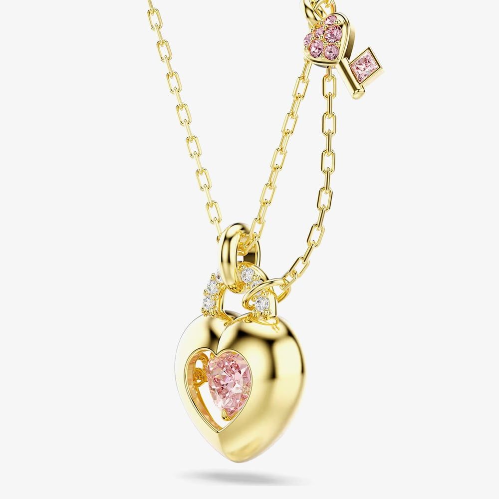 Swarovski Idyllia Gold Tone Plated Pink Heart Key Necklace 5737288