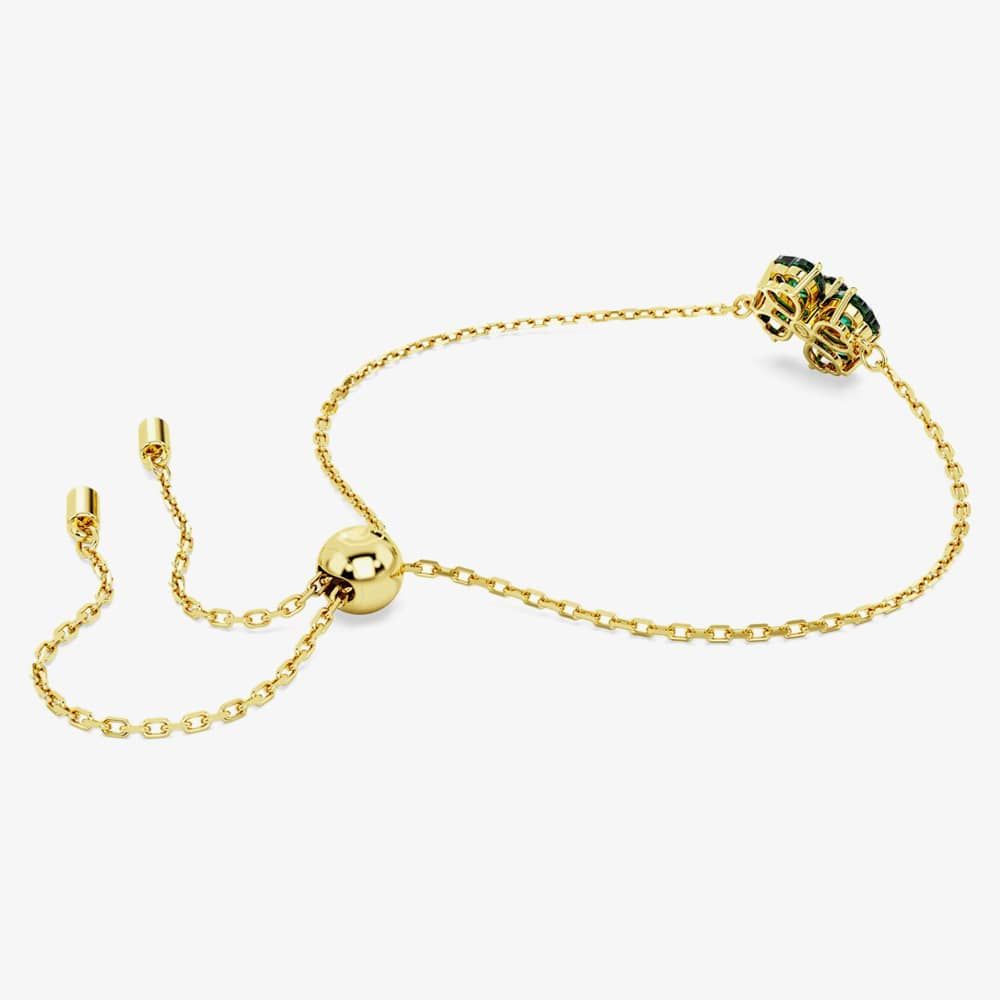 Add a touch of luxury to your look with this charming Idyllia collection bracelet. Its gold-tone plated design showcases a green clover motif crafted from four heart-shaped crystals surrounding a central stone. The chain features an adjustable closure for a perfect fit. Pair it with Idyllia clover earrings for nature-inspired elegance.