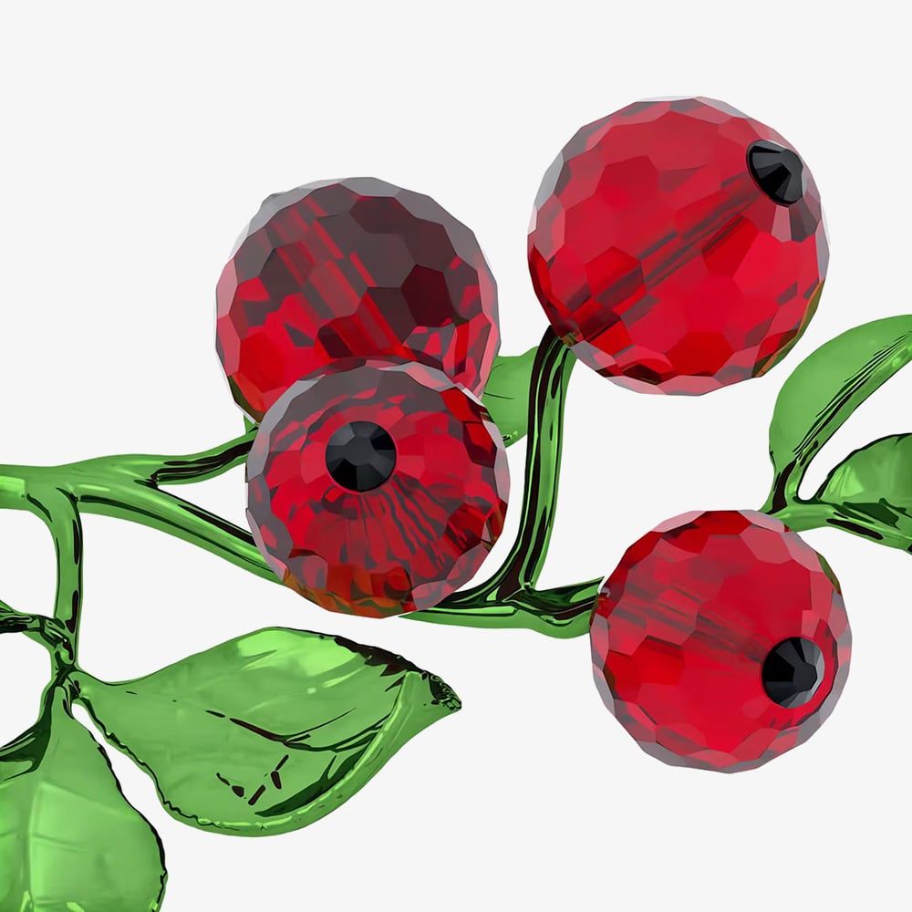 Add a festive touch to your seasonal decor with these vibrant red berries from Swarovski. Crafted with 584 sparkling facets, the delicate fruits are complemented by glossy green lacquered metal stems and leaves, bringing nature’s charm beautifully to any tablescape. Please note this is a decoration object and is not suitable for children under 15.