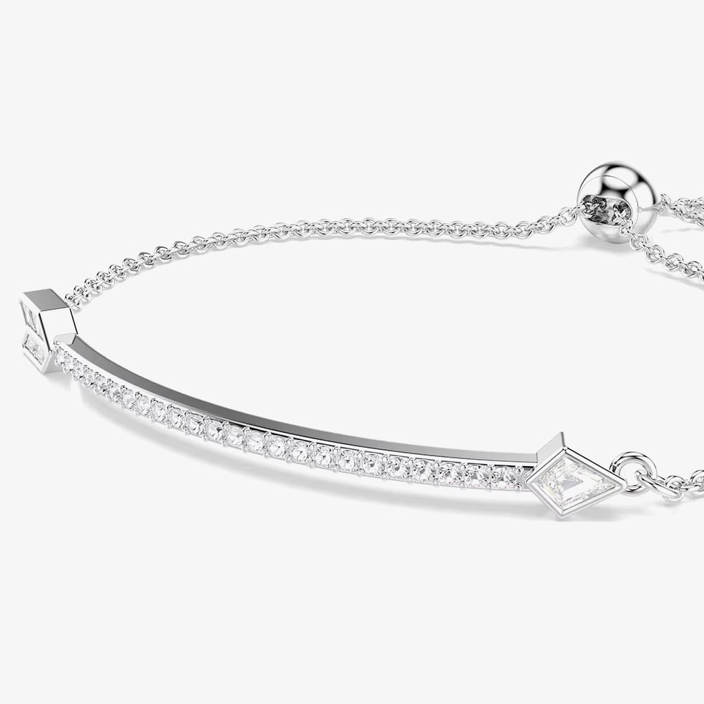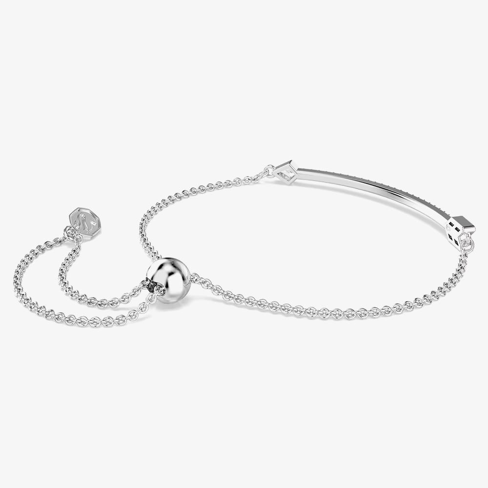 Celebrate love with the Swarovski Idyllia Rhodium Plated Silver Arrow Sliding Bracelet. This elegant bracelet features a Cupid’s arrow motif set with sparkling white Swarovski crystals and is finished with rhodium plating for a sleek shine. The sliding clasp allows for an adjustable fit, making it a perfect Valentine’s Day gift or a romantic present for someone special.