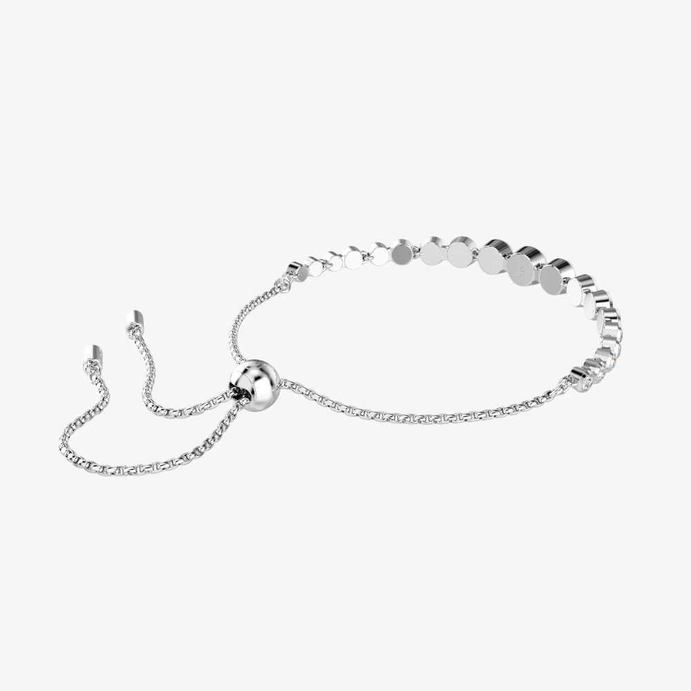 Made for everyday elegance, this rhodium plated bracelet exudes the simplicity of the Imber family. The design features a gradient of clear round-cut crystals, each placed in a modern bezel setting on a soft chain, with a sliding closure for easy wear. Each delicate drop provides glowing sophistication for your wrist, giving you a go-to piece of jewellery that can be playfully stacked with other styles.