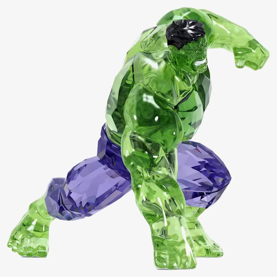 To capture the formidable strength and imposing rage of Marvel’s renowned green character, this striking Hulk figurine has been meticulously crafted with exquisite detail. The design encompasses 578 facets, highlighting the precise detail of Hulk’s muscles, and portrays him in a dynamic action pose with his fist poised for action.