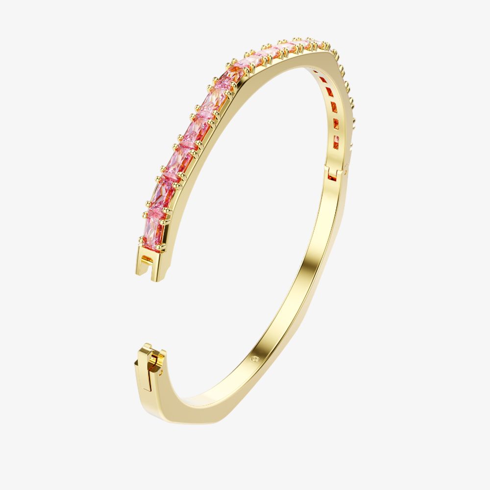 Ignite your everyday look with this hinged Matrix bangle. The gold-tone plated design is crafted in Swarovski’s emblematic octagon shape and is playfully adorned with a gradient of pink baguette-cut Swarovski Zirconia in a horizontal setting. Perfect for stacking alongside matching Matrix bangles, it’s a full surround of signature Swarovski colour to express your most vibrant self.