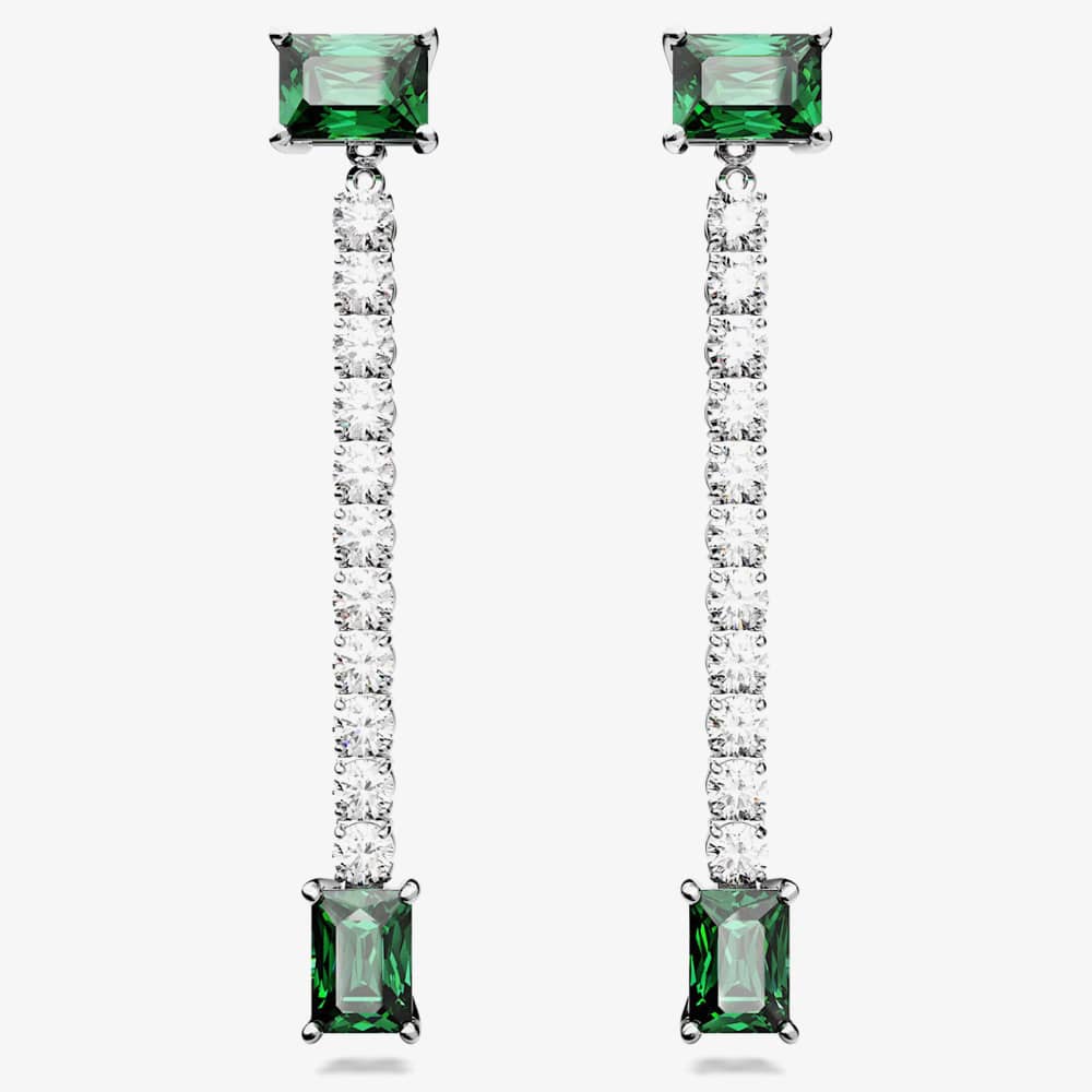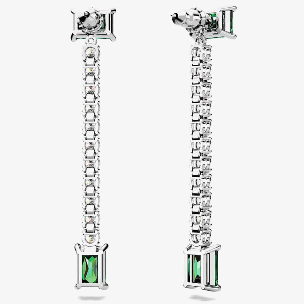 Swarovski Matrix Green Mixed Cut Rhodium Plated Dropper Earrings 5665786