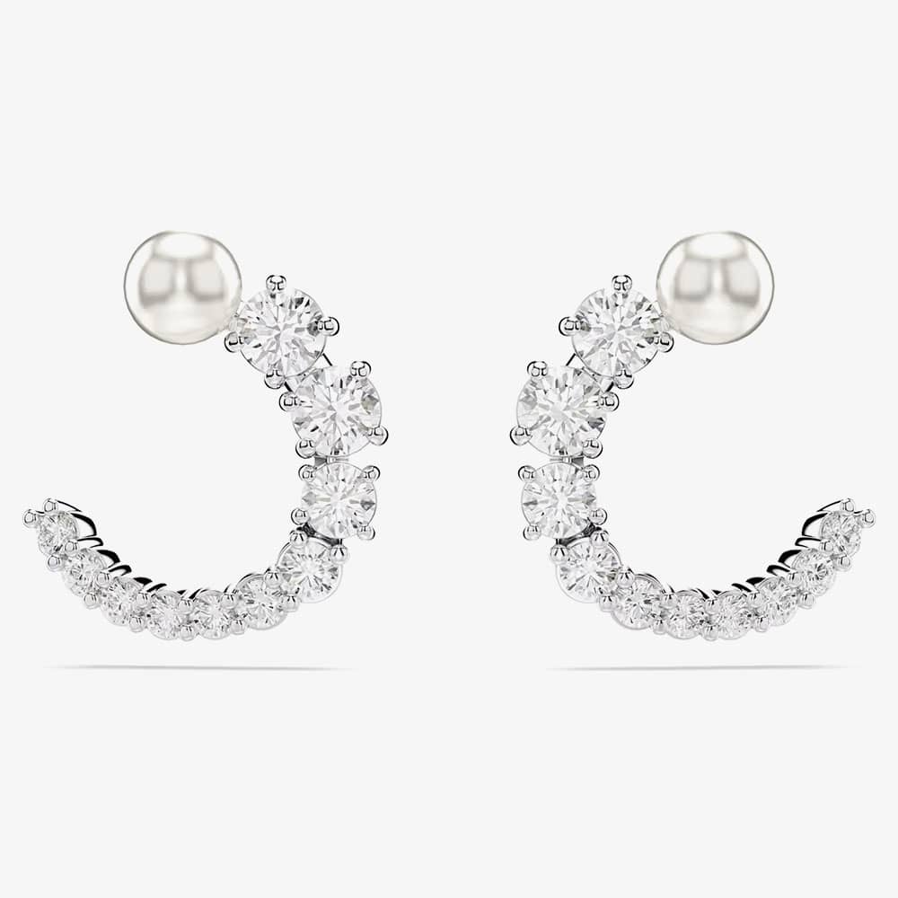 The Matrix collection seamlessly blends modern elegance with timeless charm. These exquisite earrings feature alternating white Swarovski crystal pearls and prong-set Swarovski zirconia, creating a stunning yet delicate accessory. Perfect for everyday wear, it adds just the right amount of sparkle to make any occasion feel special.