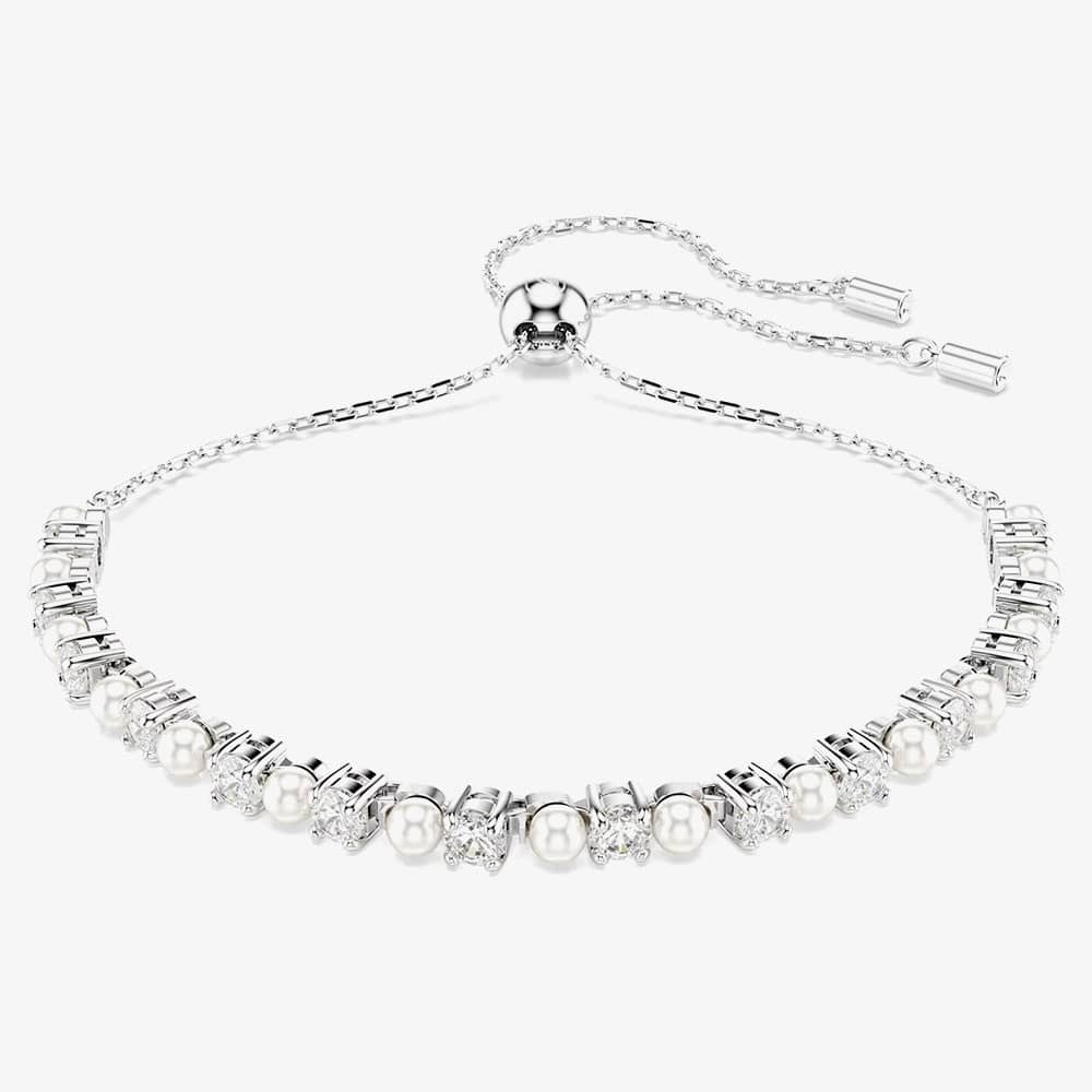 The Matrix collection seamlessly blends modern elegance with timeless charm. This exquisite bracelet features alternating white Swarovski crystal pearls and prong-set Swarovski zirconia, creating a stunning yet delicate accessory. Measuring 11-24 cm in length, it fits a wide range of wrist sizes. Perfect for everyday wear, it adds just the right amount of sparkle to make any occasion feel special.