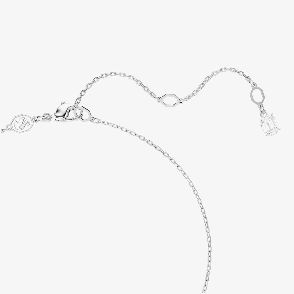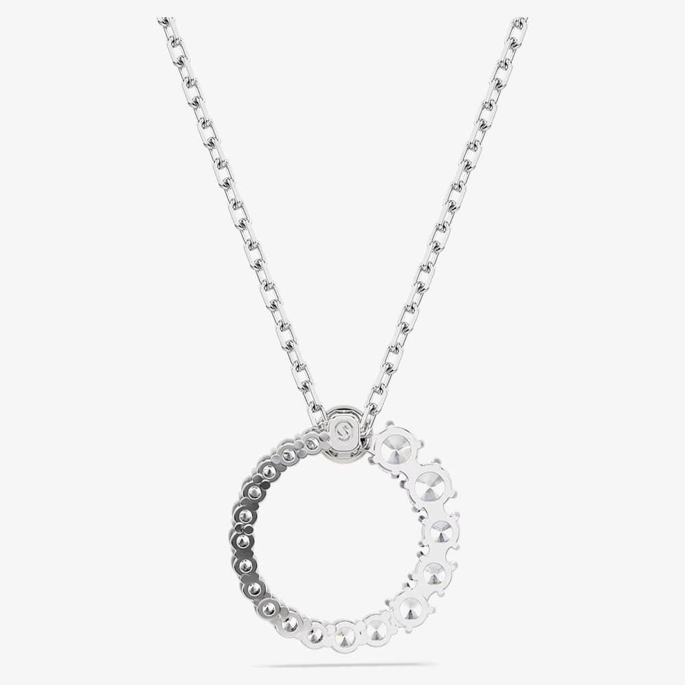 With a traditional circle silhouette and modern detailing, this elegant Matrix pendant is certain to draw attention. Suspended from a delicate chain, this rhodium-plated piece features a ring of clear Swarovski Zirconia in different sizes. Finishing with a white Swarovski Crystal Pearl at the centre of the pendant, this piece is adjustable between 38 and 45 cm.