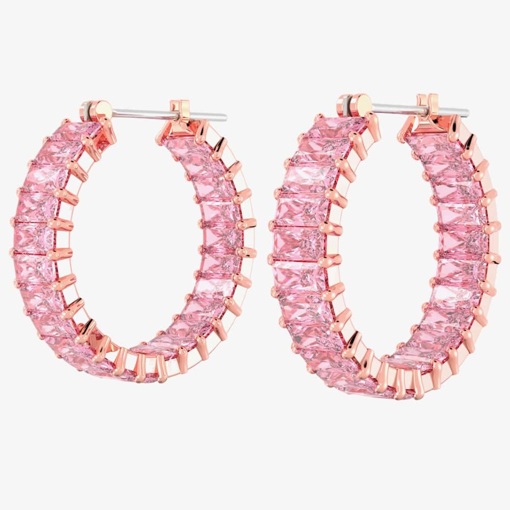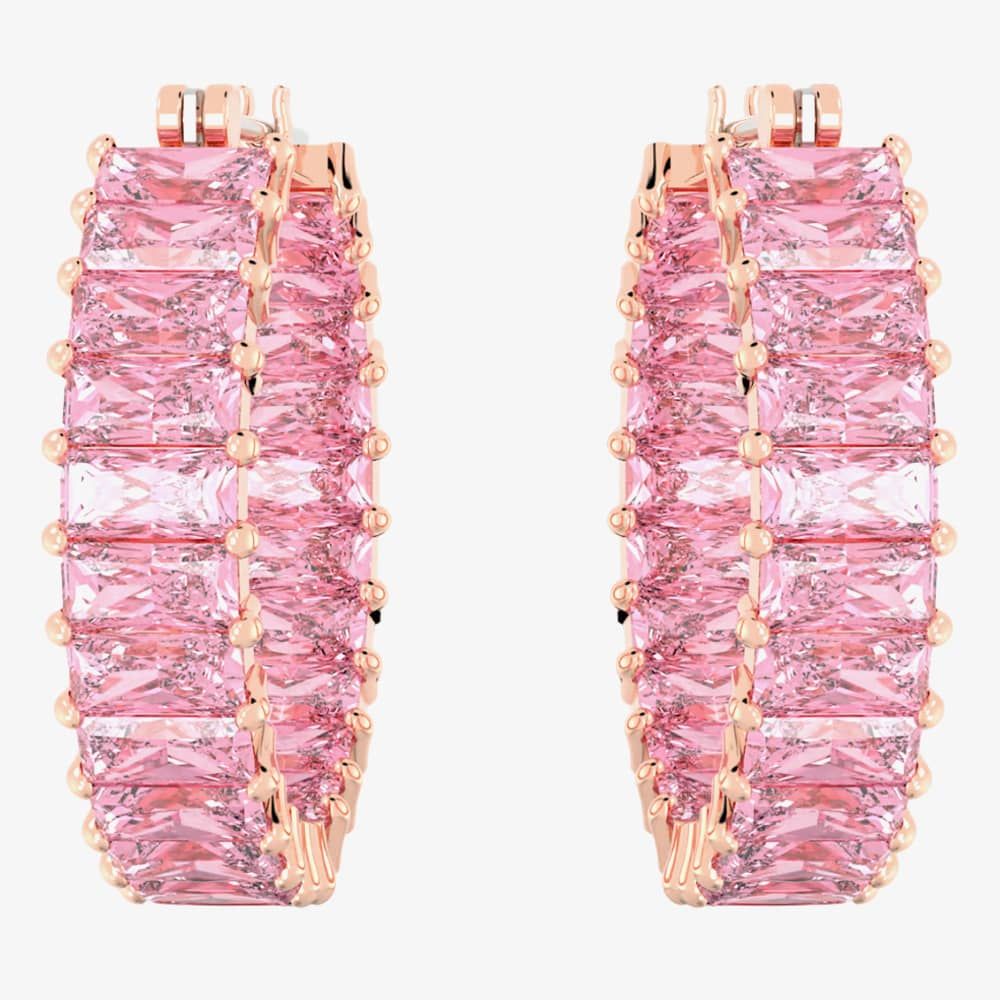 Elevate your casual style effortlessly with these luxurious hoop earrings from the Matrix family. The alluring colour combination captures attention, featuring the synergy of rose gold-tone plating and pink stones.