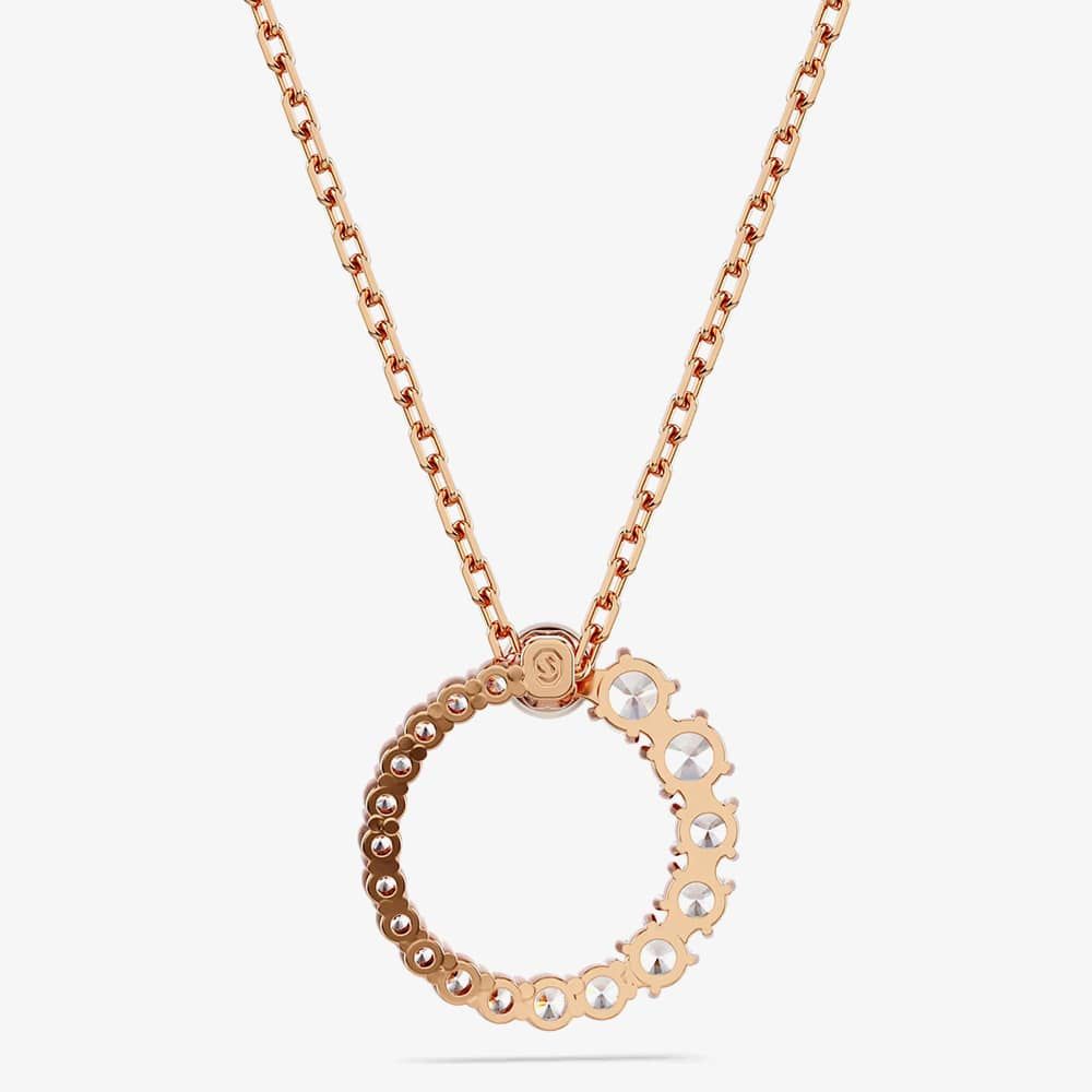 With its refined silhouette and modern detailing, this elegant Matrix pendant captures attention. Suspended from a delicate chain, the rose gold-tone jewellery features a ring of clear Swarovski Zirconia in varying sizes, complemented by a central white Swarovski Crystal Pearl.