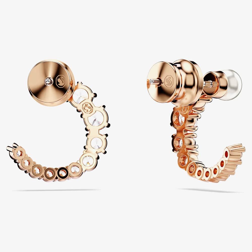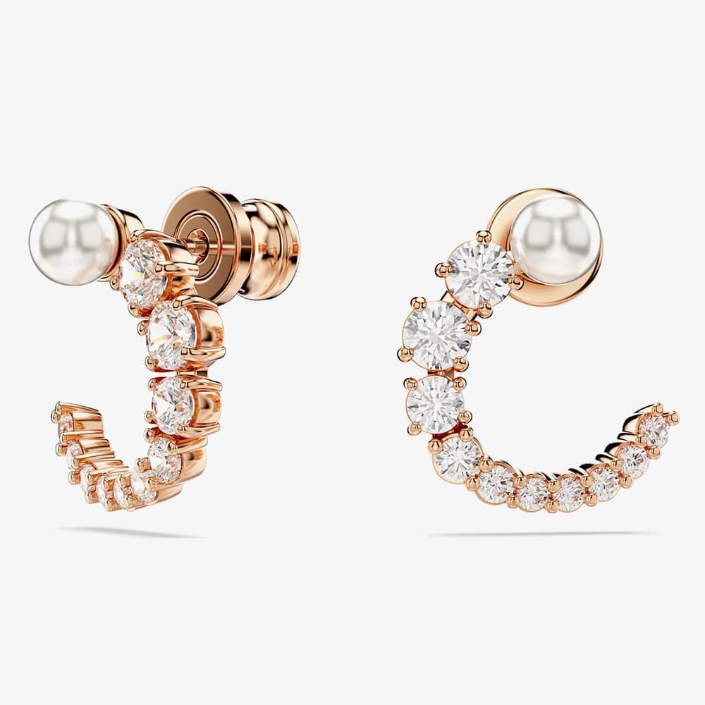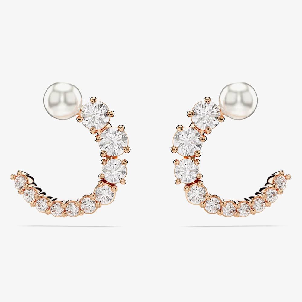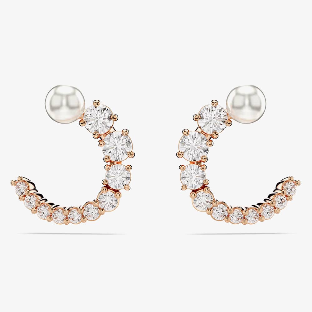 Each rose gold-tone plated stud showcases an open ring of clear Swarovski Zirconia, graduating in size from small to large, and is topped with a white Swarovski Crystal Pearl.