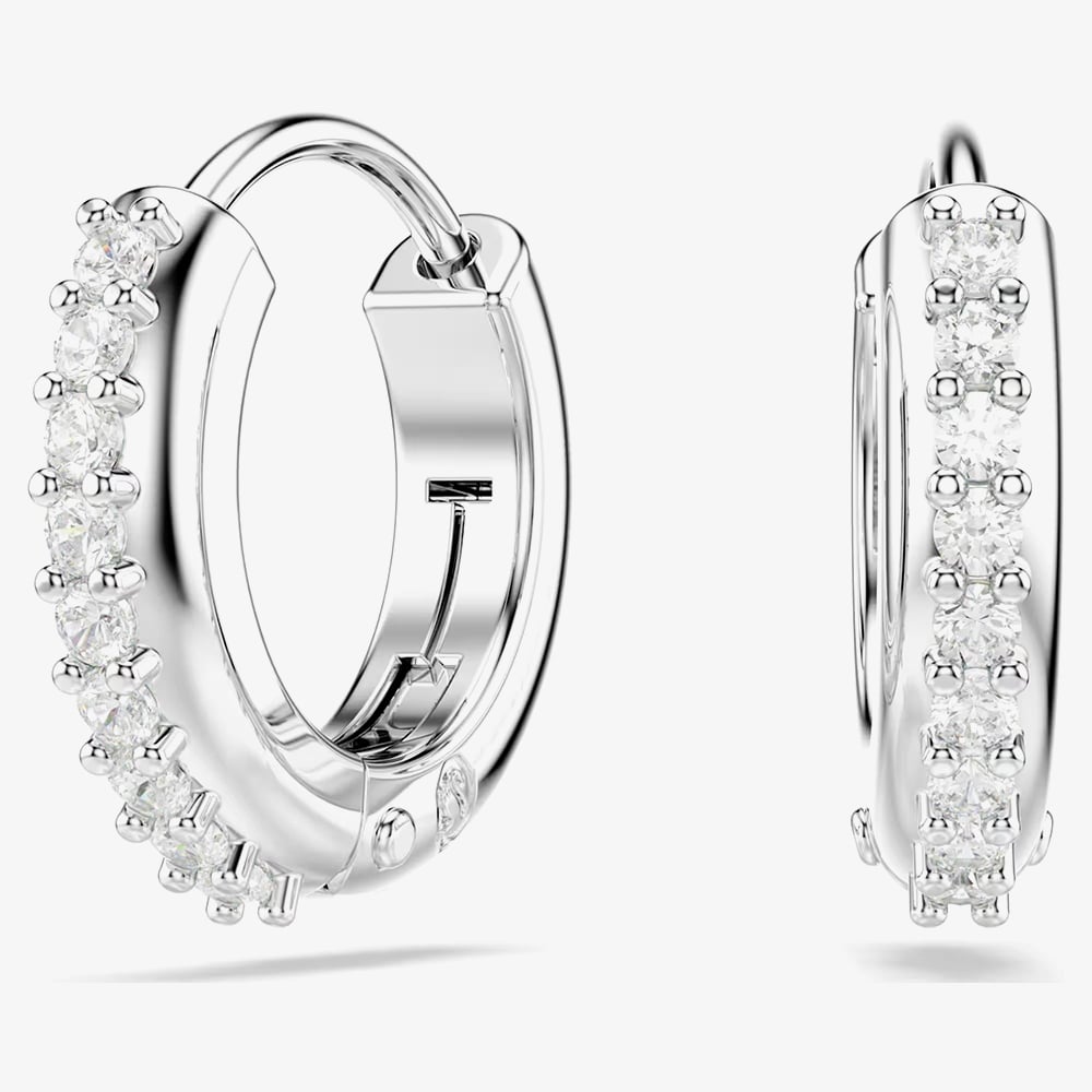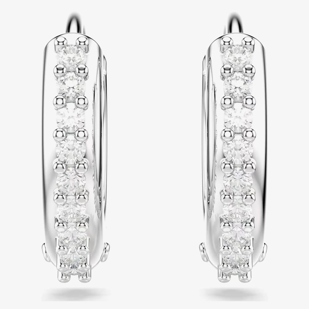 Elevate your style with the Swarovski Matrix Hoop Earrings. These rhodium-plated earrings feature dazzling white crystals, offering a touch of timeless elegance. Perfect for any occasion, they add a refined sparkle to your look.
