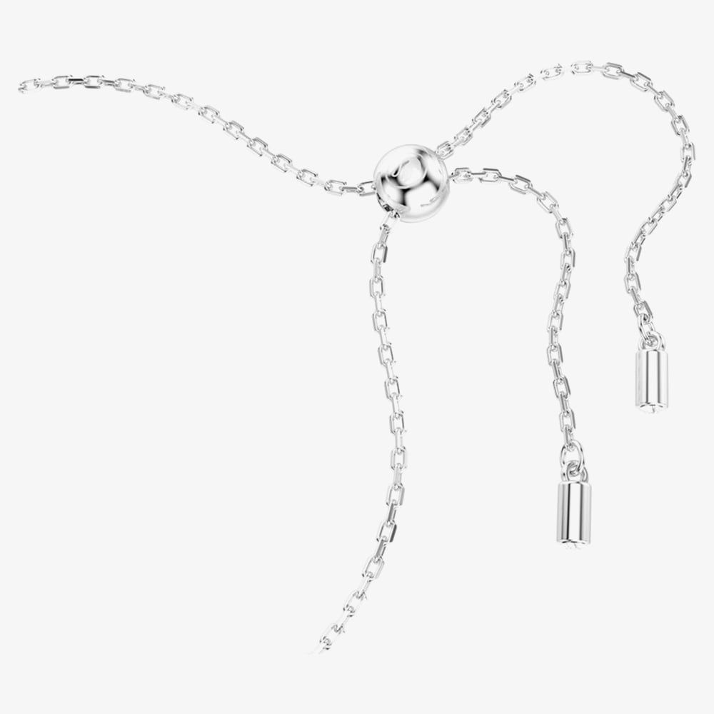 Enhance any outfit with this radiant classic tennis bracelet, featuring clear Swarovski Zirconia and a splash of colour. The rhodium-plated jewellery showcases a uniform row of clear Swarovski Zirconia, highlighted by a baguette-cut green Swarovski Zirconia at the centre. Secured with a sliding closure, this piece offers a vibrant twist on a timeless design.