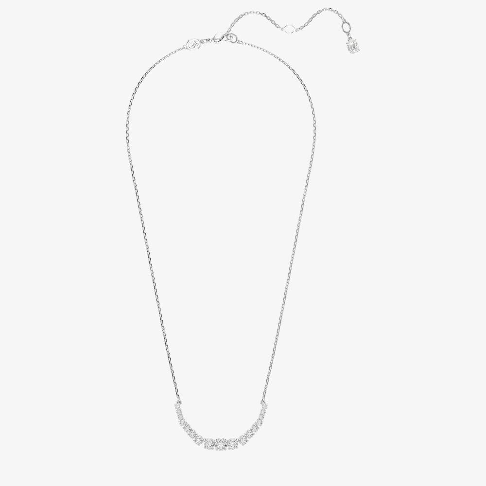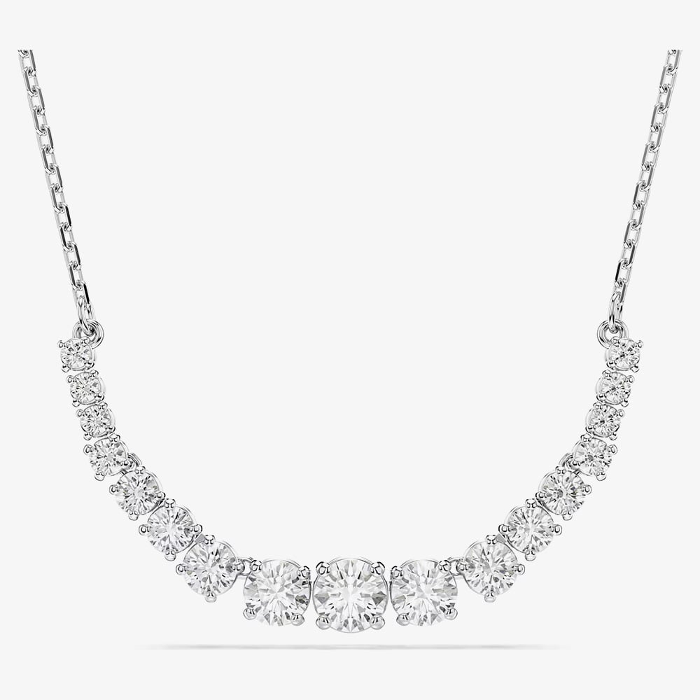 Embrace a pure expression of elegance with this radiant Matrix necklace. The rhodium plated design features a delicate chain, adorned in a gradient of round-cut Swarovski Zirconia, each faceted for light-reflecting wonder. Enhance the look of luxury by pairing this necklace with a set of matching earrings or a bracelet.