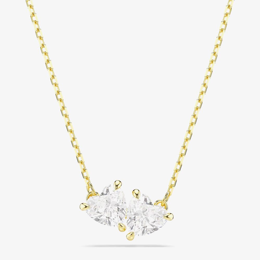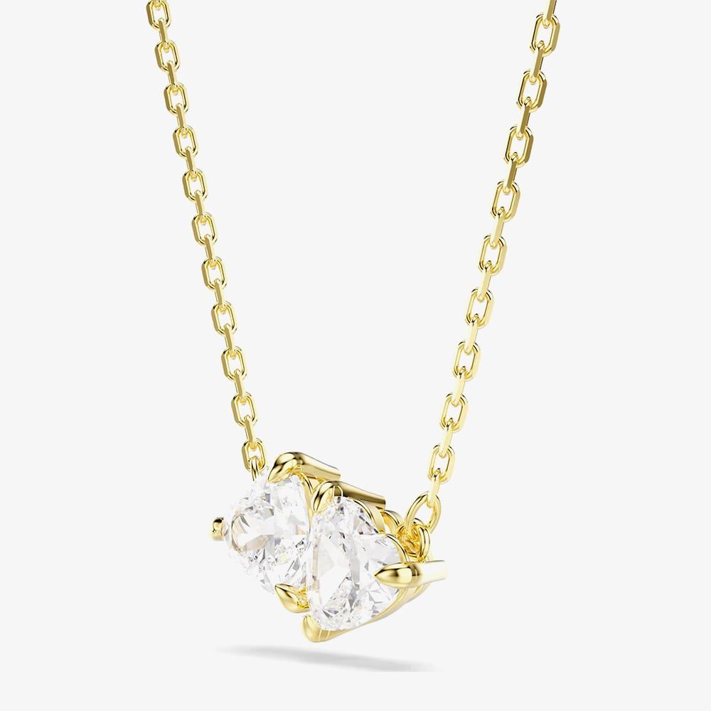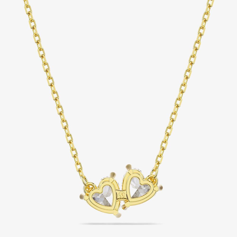A timeless design with a modern edge from the Mesmera collection, this gold-tone plated necklace features twin heart-shaped Swarovski Zirconia. Finished with a secure lobster clasp and a delicate chain, it’s the perfect romantic gift for someone special.