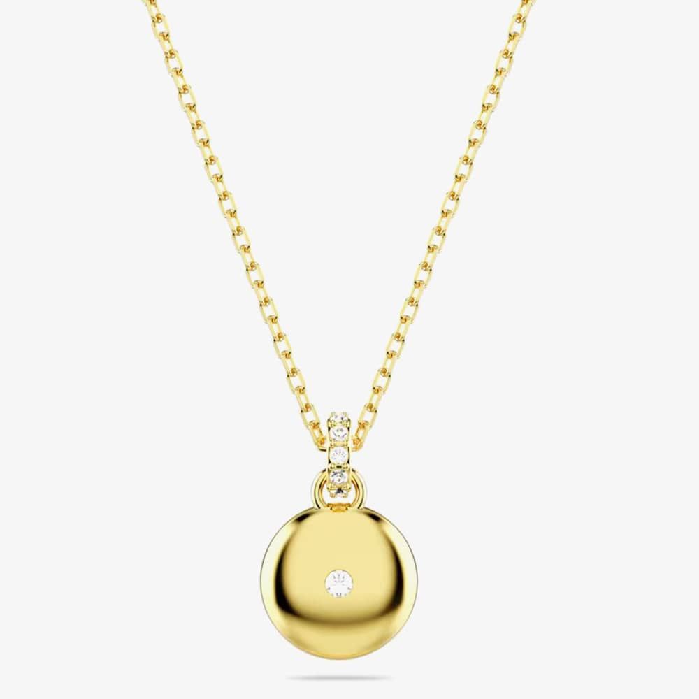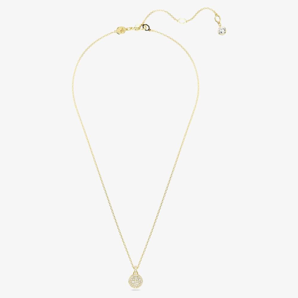 Inspired by the galaxy, this pendant promises a dazzling impact into any style. The gold-tone plated design, suspended from a delicate chain with a lobster closure, showcases a domed meteor motif adorned with a snow pavé of clear round crystals in various sizes.