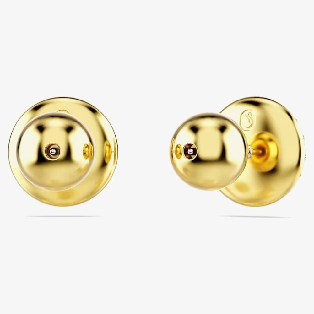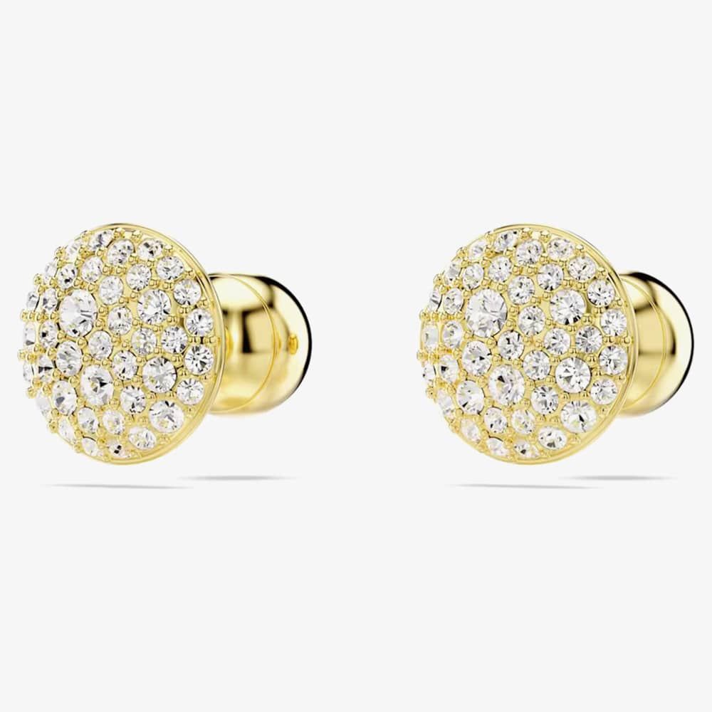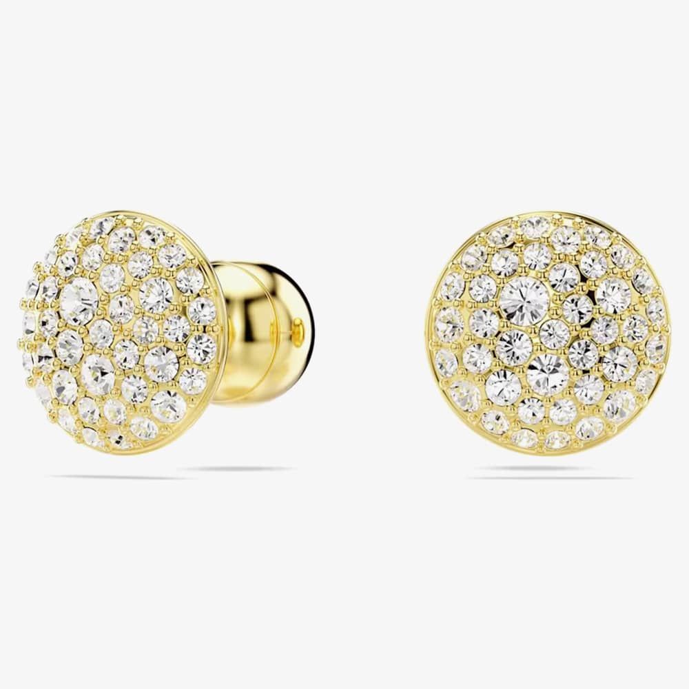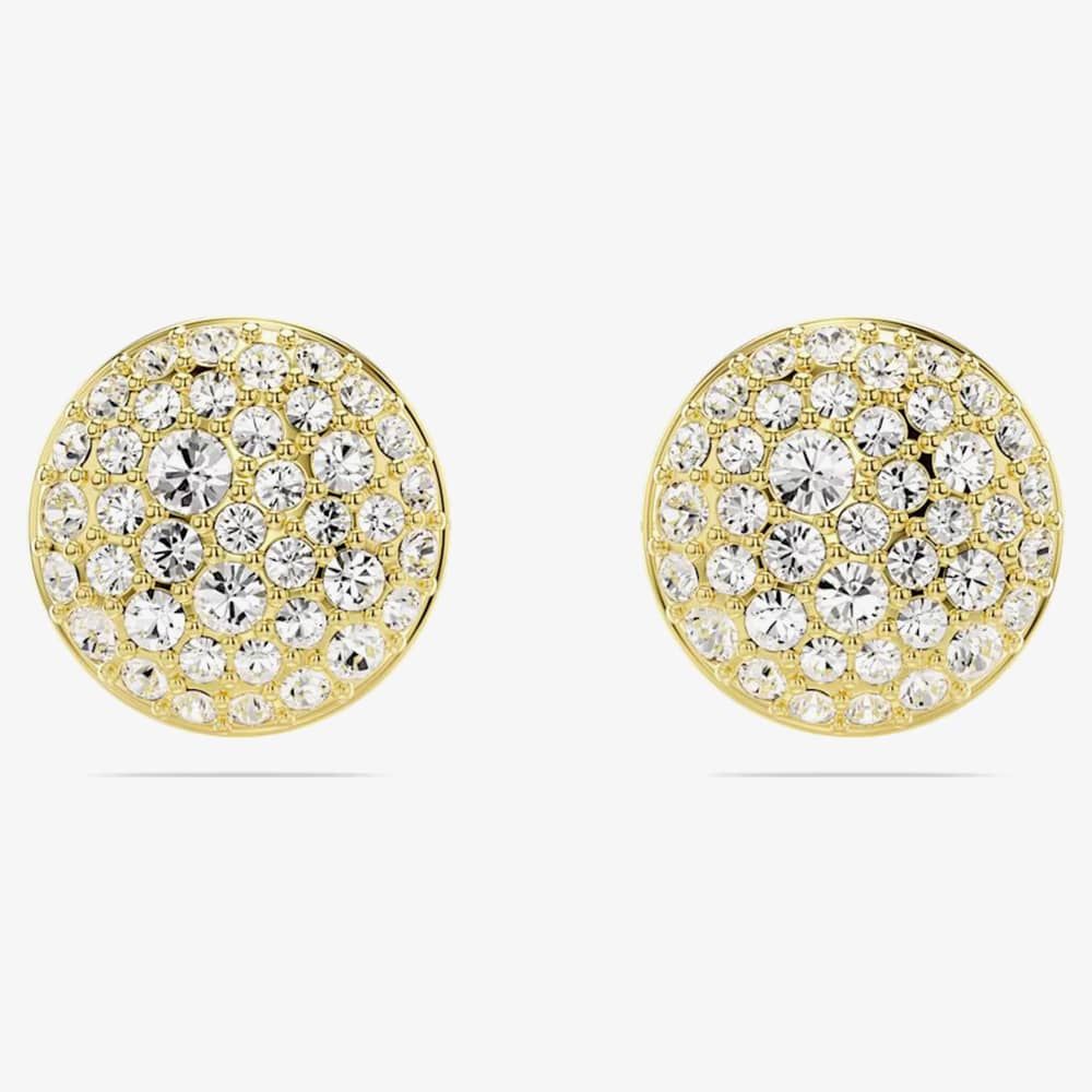 Illuminate your style with these stunning pierced earrings that sparkle and shine. Each earring, inspired by the galaxy, is plated in gold-tone and showcases a domed meteor motif adorned with a snow pavé of clear round crystals.