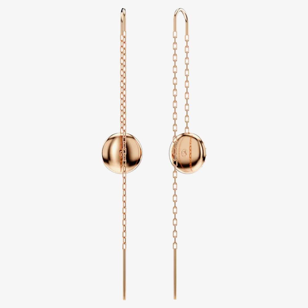 Drawing inspiration from the cosmos, each rose gold-tone plated piece includes a dangling chain on either side, accompanied by a domed meteor motif adorned with clear round crystals. Offering an effortless way to bring a blaze of light to your look.