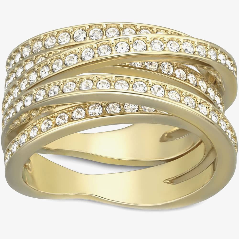 From Swarovski is this beautiful gold tone ring with a unique crossover spiral design. The ring has also been adorned with sparkling clear crystal pavé for that elegant touch.