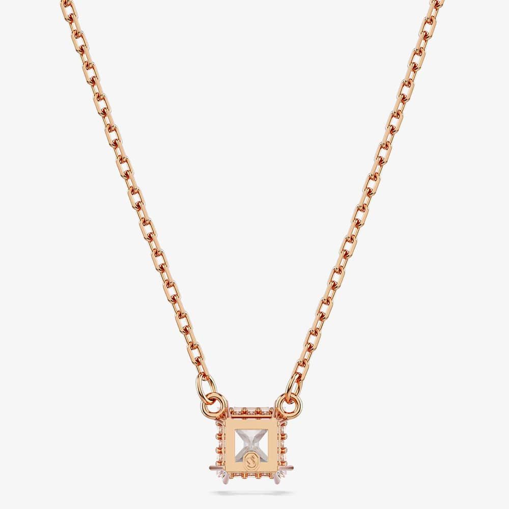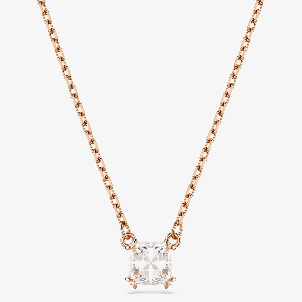 The rose gold-tone plated design features a square-cut Swarovski Zirconia in an elegant double prong setting, while the elongated chain is finished with a lobster closure. This versatile piece would make a captivating gift for someone special.