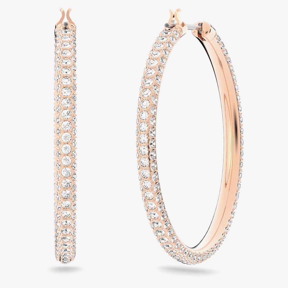 Swarovski Stone Rose Gold Tone Crystal Hoops Earrings 5383938