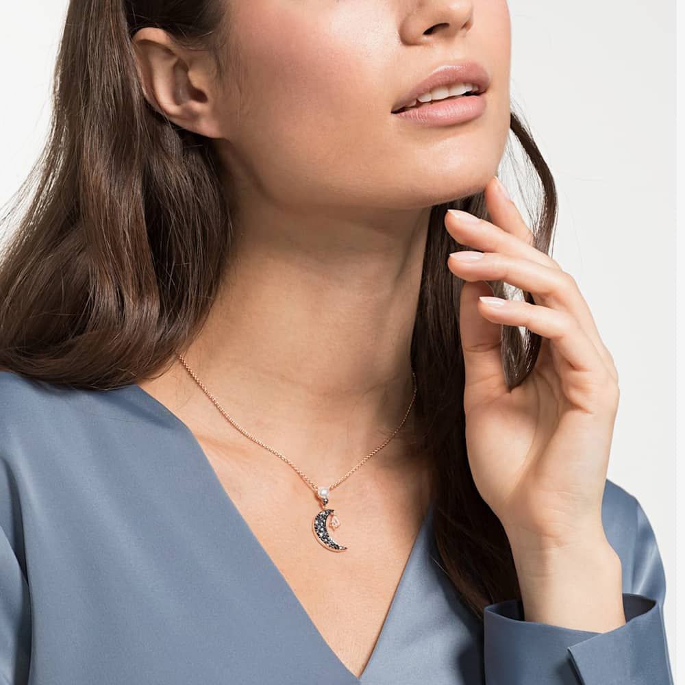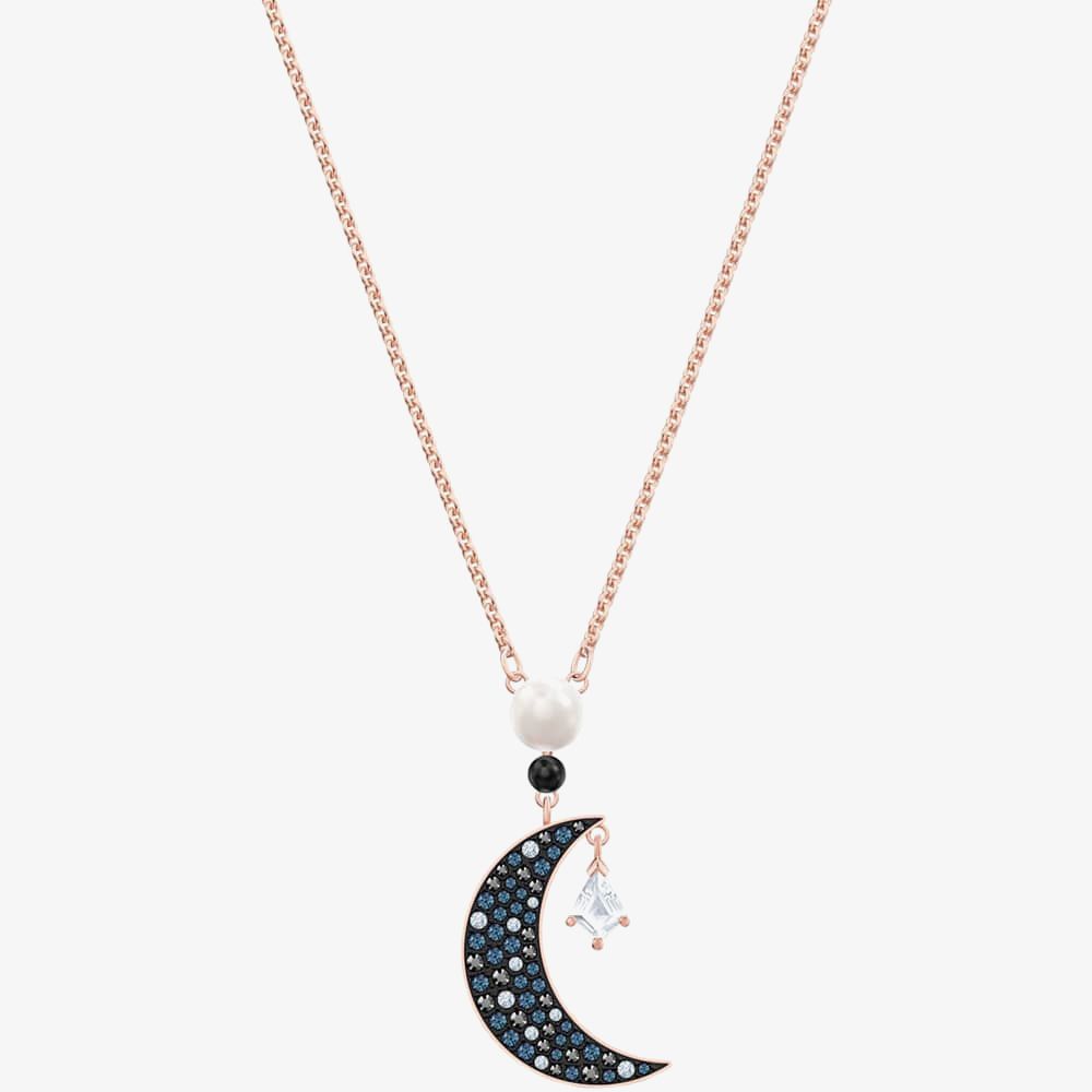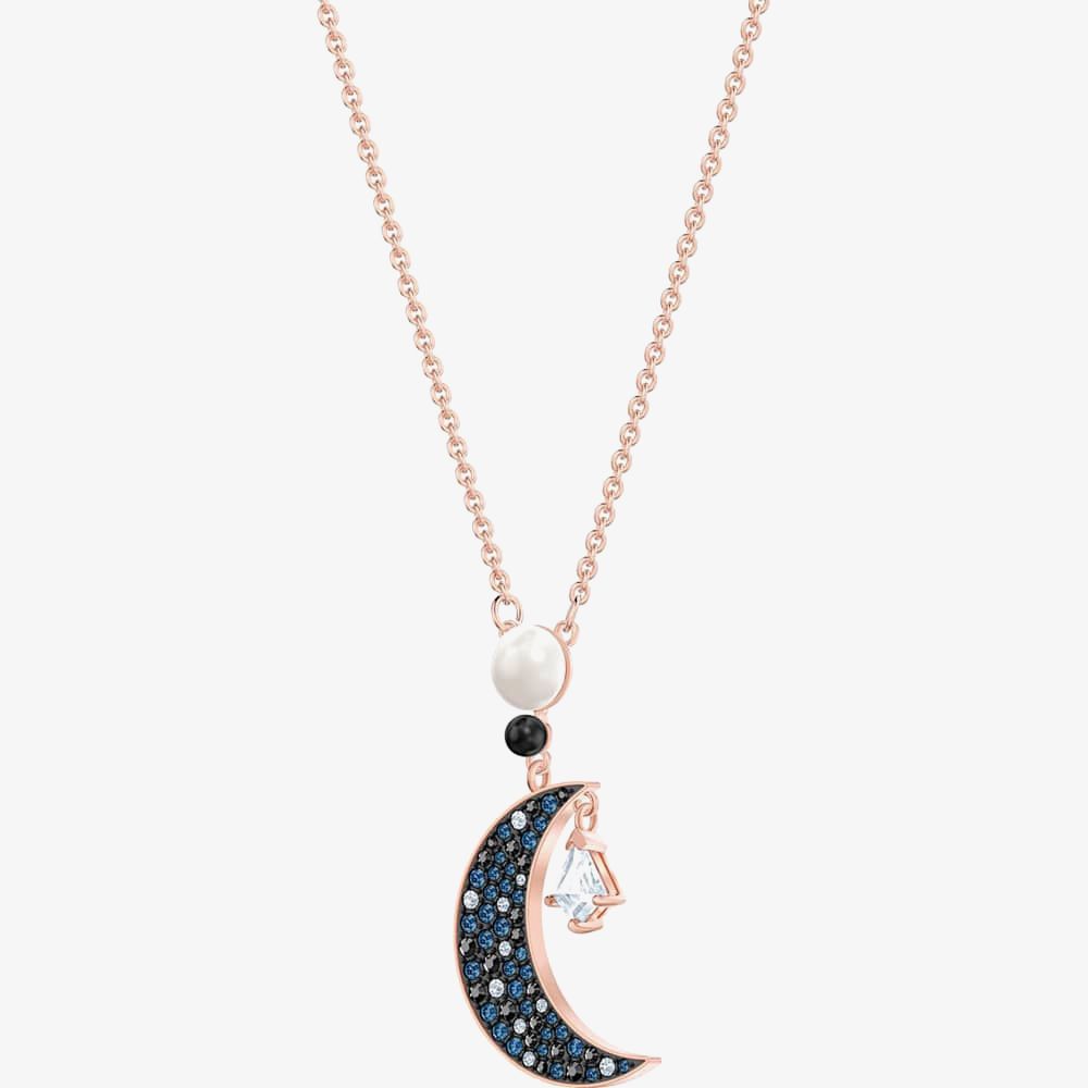 Taking inspiration from the beauty of the night sky, this classic pendant is perfect for this season. Featuring moon and star motifs, which symbolise hopes and dreams the rose gold tone necklace is finished with delicate blue crystal pave. Pair with matching items from the collection to complete your look.