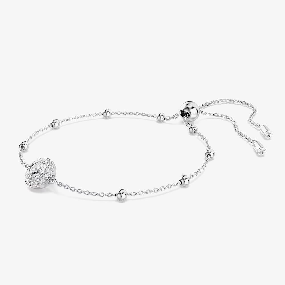 Wear it your way with this innovative, two-in-one bracelet. Featuring a rhodium-plated adjustable chain, metallic beads, and a sparkling double-sided motif, it reverses to reveal a new crystal display. Style it with other Una Angelic pieces for added shine.