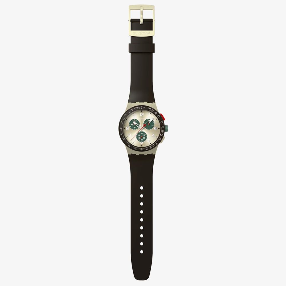 https://www.thbaker.co.uk/swatch-essentials-obsidian-ink-sun-brushed-silver-watch-sust402149523Swatch Essentials Obsidian Ink Sun Brushed Silver Watch SUST402https://www.thbaker.co.uk/media/catalog/product/2/1/21-61-25126894_swatch_01.jpg115115GBPOutOfStock'Obsidian Ink' Blk/Beige Sw Sil Chrn Dl Drk Brwn Bez This chronograph features a sun brushed silver coloured dial with dark green sub dials, silver-toned hour and minute hands with a glow-in-the-dark effect, red seconds and sub dial hands, and a date window at 3 o'clock. The matte beige case is paired with a matte dark brown bezel displaying a white printed tachymeter scale and multicoloured crown and pushers. Completing the look is a matte dark brown strap with a matching loop and a matte beige buckle.