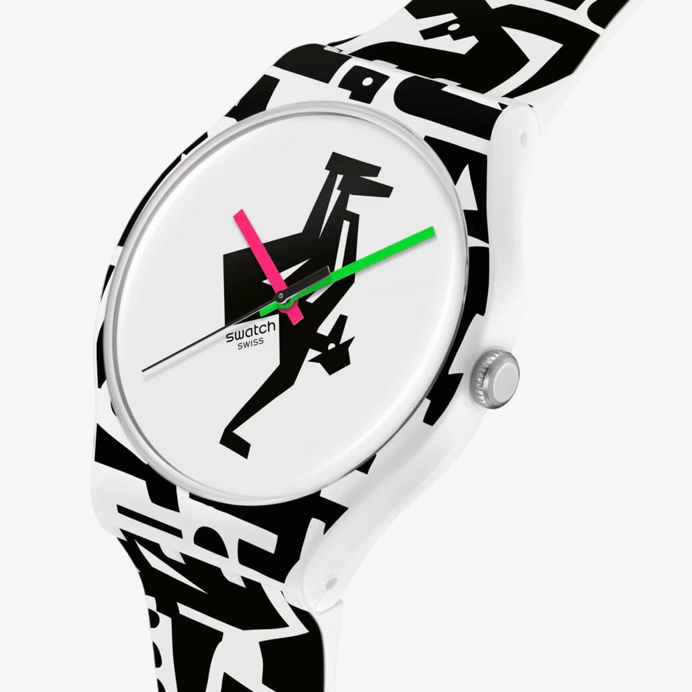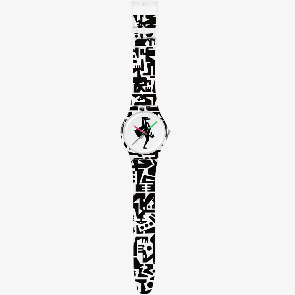 A sleek and stylish watch, this timepiece features a bold white dial with a unique graphic design. The watch is housed in a 41mm case, and the plastic strap is both comfortable and durable, making it perfect for everyday wear. With its quartz movement and water resistance up to 30 meters, this watch is not only fashionable but also functional.