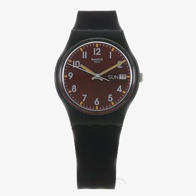 From Swatch comes this attractive rubber strap watch perfect for everyday wear. Set in durable lightweight plastic with a stylish Swatch design, featuring a date window, round easy to read dial with luminescent hands and a traditional buckle closure.