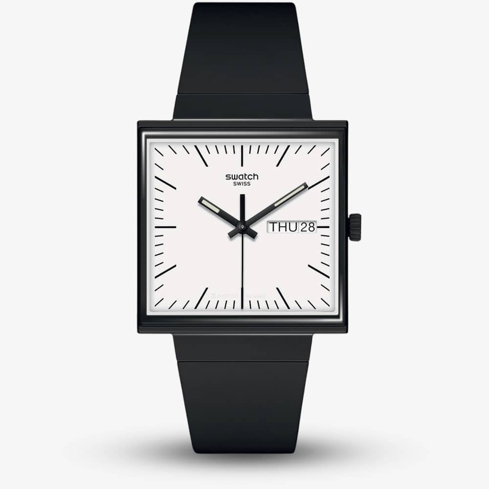 https://www.thbaker.co.uk/swatch-what-if-square-black-watch-so34b700135030Swatch What If Square Black Watch SO34B700https://www.thbaker.co.uk/media/catalog/product/2/1/21-61-261_swatch_01.jpg9696GBPInStock/Brands A-Z/Swatch Watches/Swatch What If/Watches/Watches/Mens Watches/Watches/Swiss Watches/Watches/Designer Watches/Watches/Ladies Watches/Brands A-Z/Swatch Watches/Watches/Quartz Watches/Brands A-Z/Swatch Watches/Swatch Ladies/Brands A-Z/Swatch Watches/Swatch Gents/Brands A-Z/Swatch Watches/Swatch Originals7545362636274692431842694299467949654966663412479242993626WHAT IF BLK RUB SW WHT SQ Crafted with a square bioceramic case, this watch showcases edge-to-edge biosourced glass, granting a glimpse of the indexes from the side. An integrated biosourced strap complements the dial, while the printed battery cover on the back features a watch face that inspired this black square timepiece.