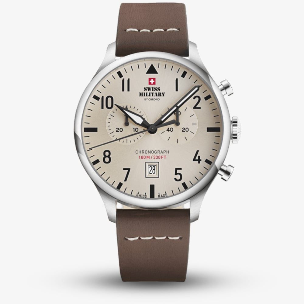 Swiss Military Mens Vintage Chronograph Brown Leather Strap Watch SM34098.09