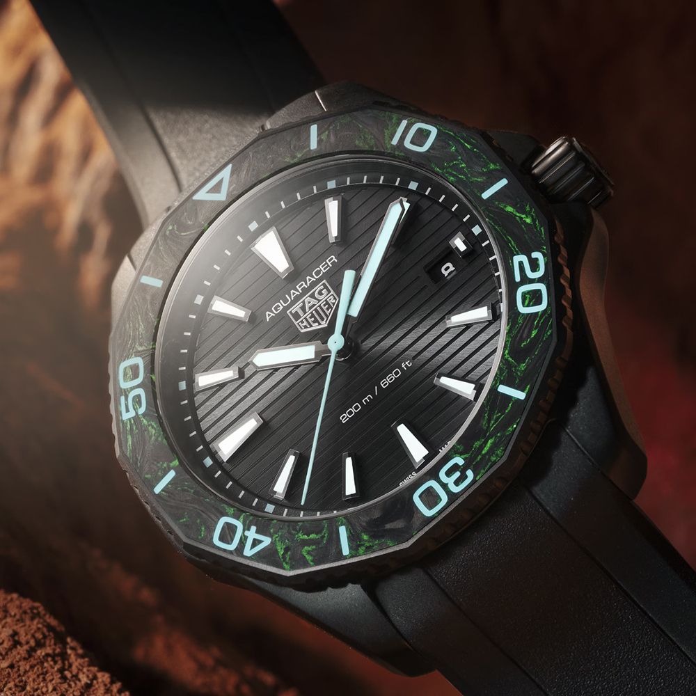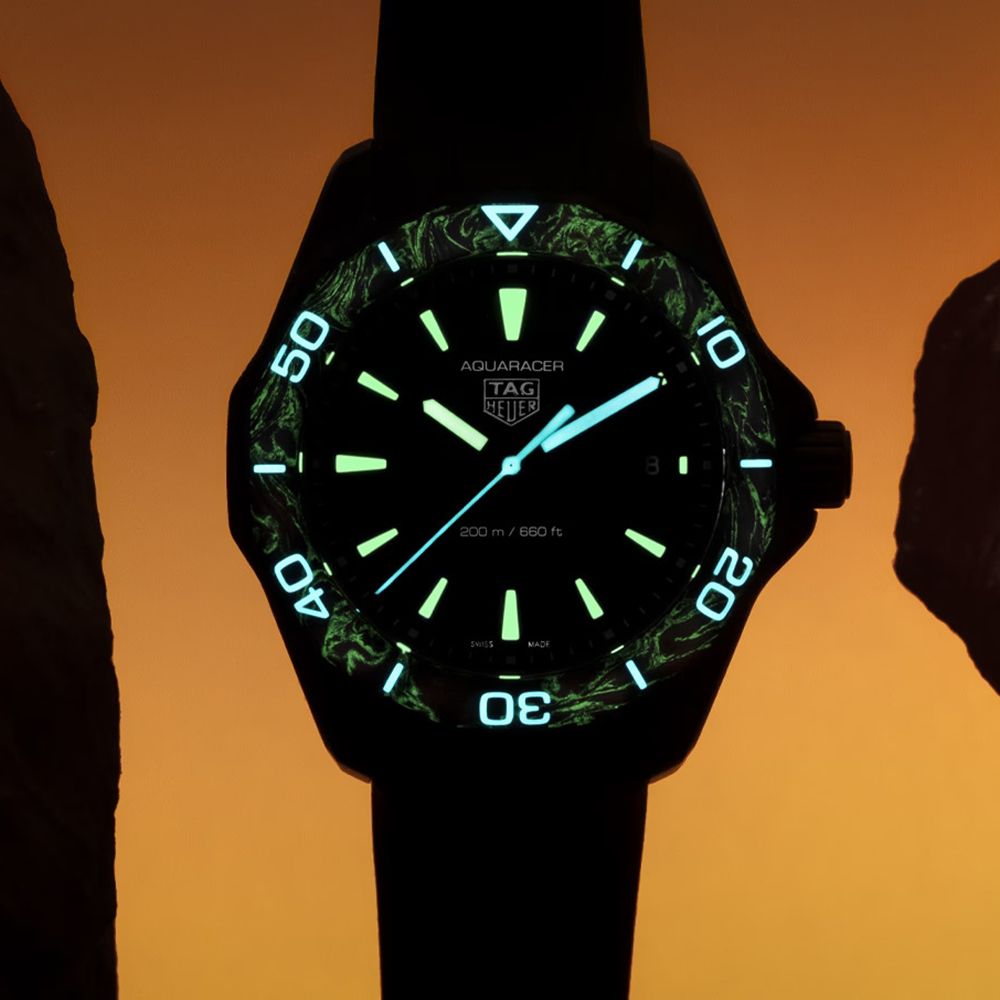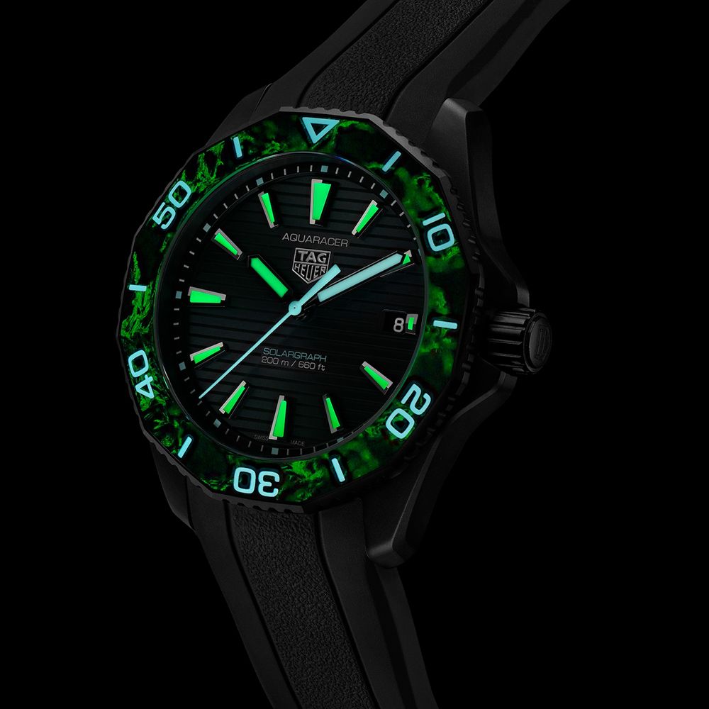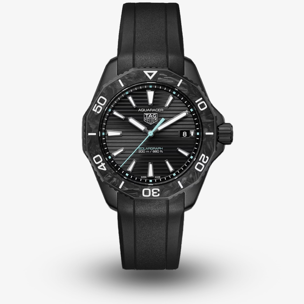The TAG Heuer WBP1112.FT6199 is a new take on a watch made for outdoors. The first ever solar-powered TAG Heuer integrates the innovative Solargraph module to harness the sun’s limitless energy. The watch combines a 40mm round shaped black DLC coated stainless-steel case and a black rubber strap with a push button deployment clasp. It has a black analogue sunray brushed dial, luminescent hands and bezel, and a date display which is protected beneath scratch resistant sapphire crystal glass. Power is generated by the solar powered TH50-00 quartz movement. This model also has a water resistance of up to 200 metres. Watch also features a turning carbon rotating bezel.