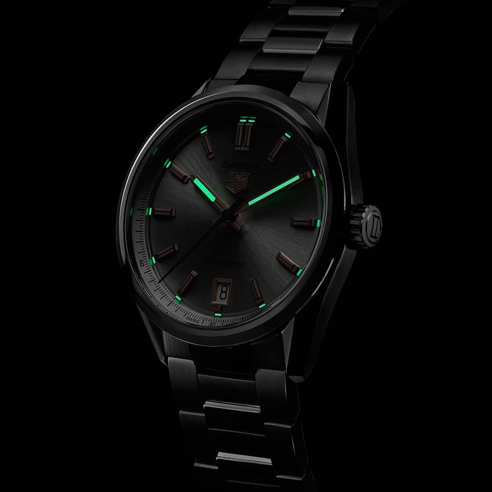 The TAG Heuer Carrera was created on the race tracks in 1963 and exudes an elegant but sporty vibe. The TAG Heuer Carrera WBN2310.BA0001 has been created with a Calibre 7 Automatic movement with a warm sunray silver dial and 18K 5N rose gold-plated hands and applied indexes. This classic model also features thinner lugs to suit comfort and promote elegance.
