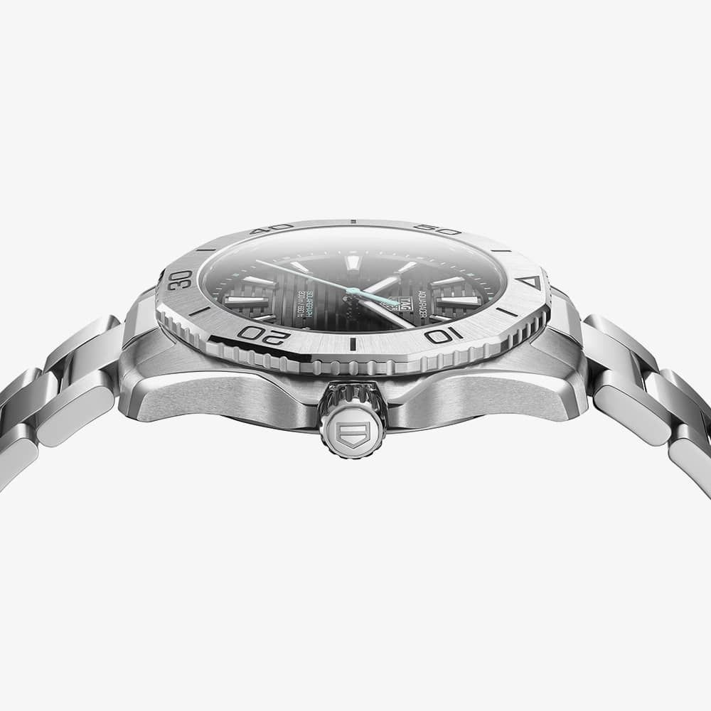 The TAG Heuer WBP1113.BA0000 Aquaracer watch combines a 40mm round-shaped case and stainless-steel bracelet with a push-button deployment clasp. It has a sun-brushed grooved blue analogue dial with Super-LumiNova-filled hands and a date display, which is protected beneath scratch-resistant sapphire crystal glass. Power is generated by TAG Heuer’s TH50-00 Calibre Solargraph movement, which is powered by natural and artificial light.